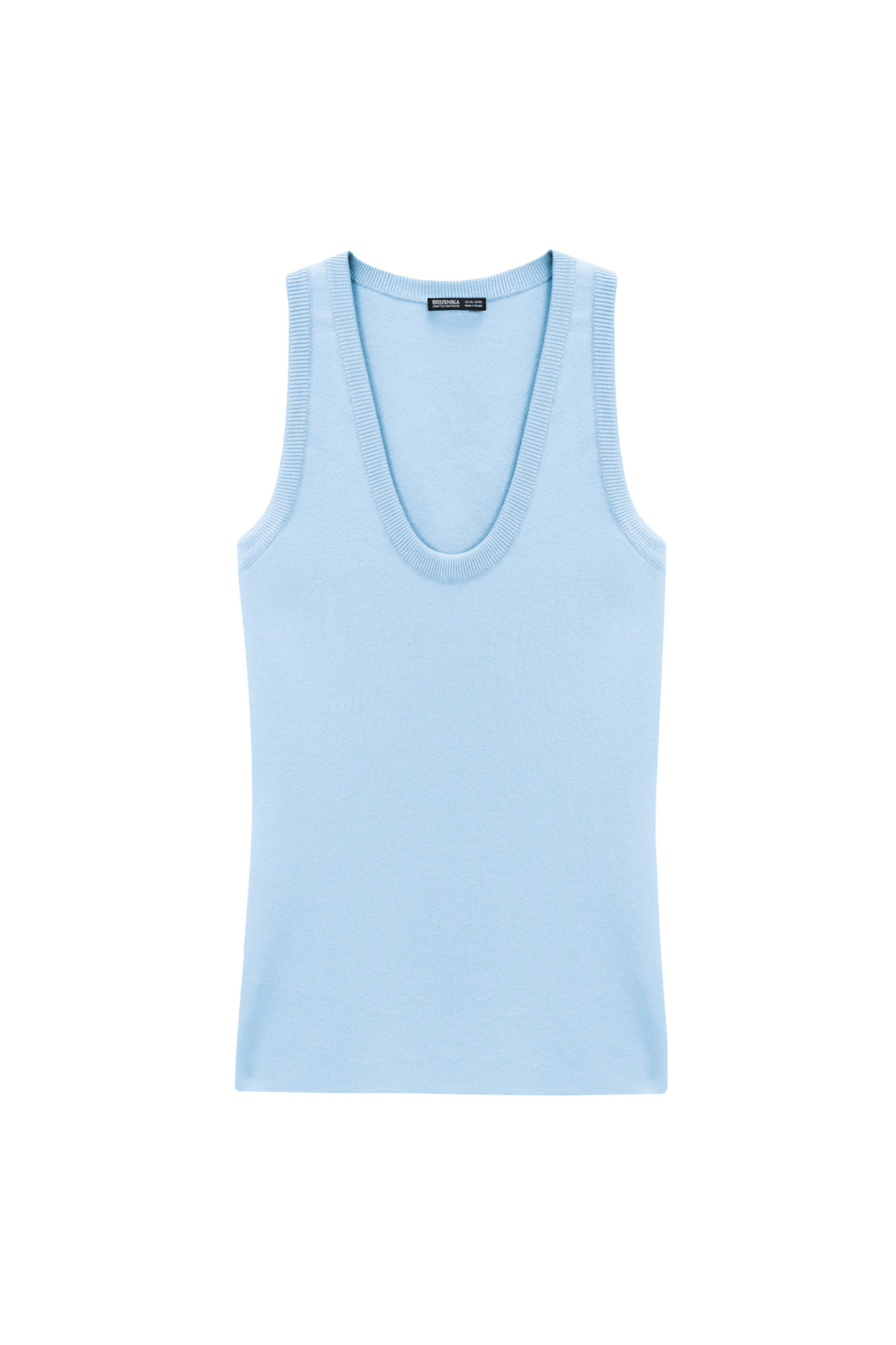Трикотажный топ из вискозы. Модель приталенного силуэта, с U-образным вырезом горловины и глубокой проймой.