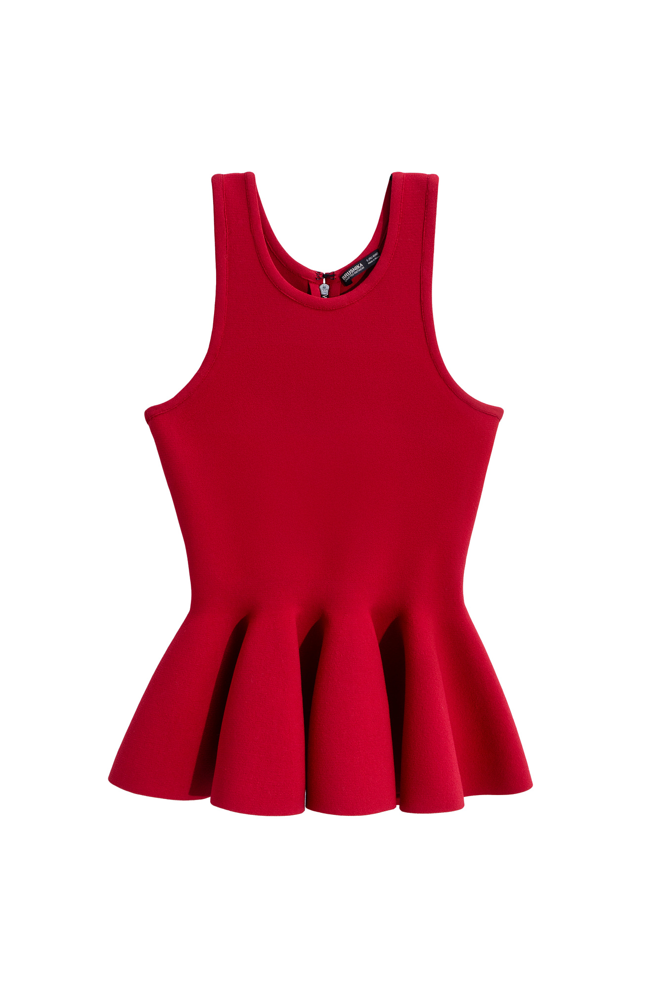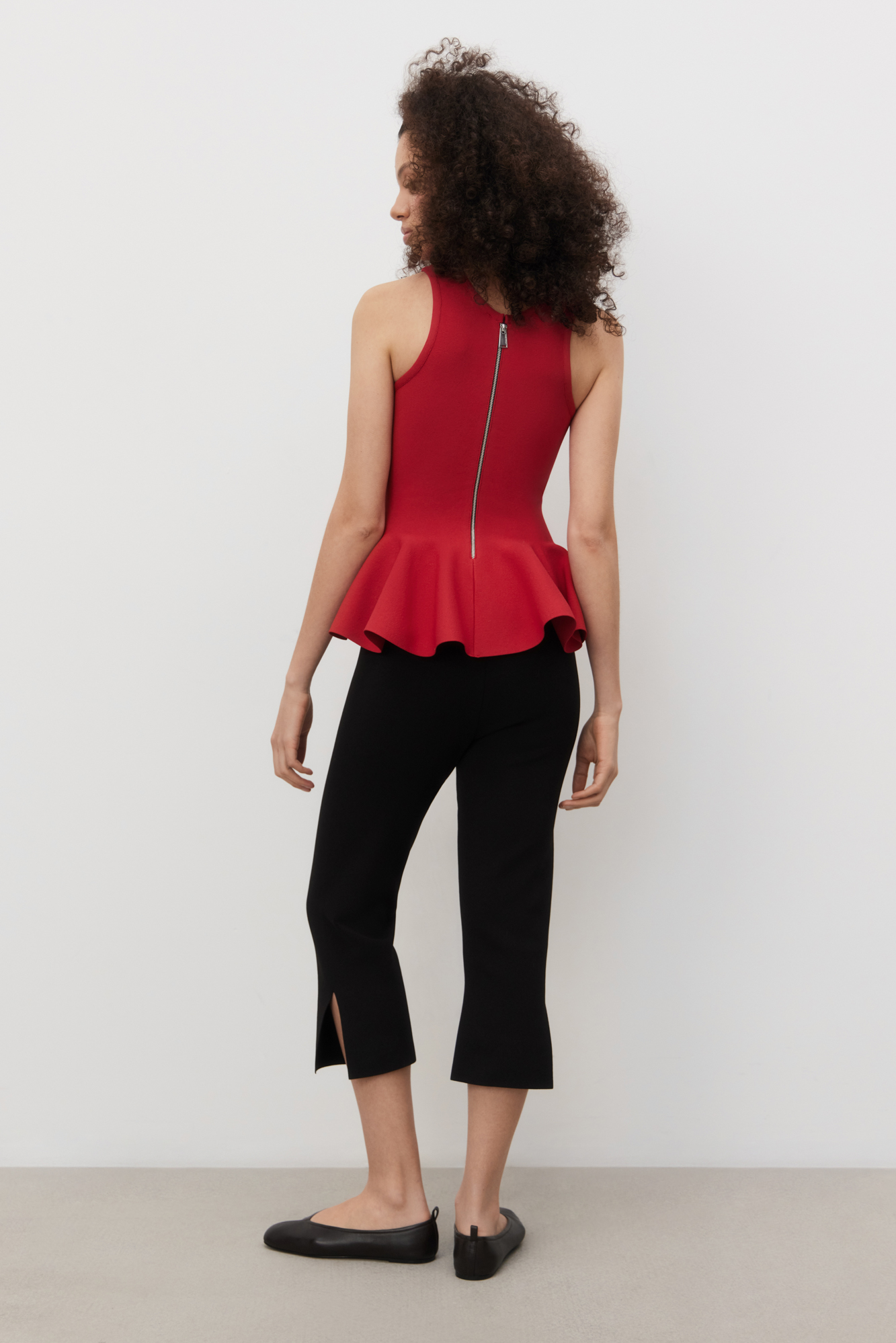 Трикотажный корсет из матовой вискозы. Модель на широких бретельках с баской. Застежка на молнию сзади. Изделие без подкладки.