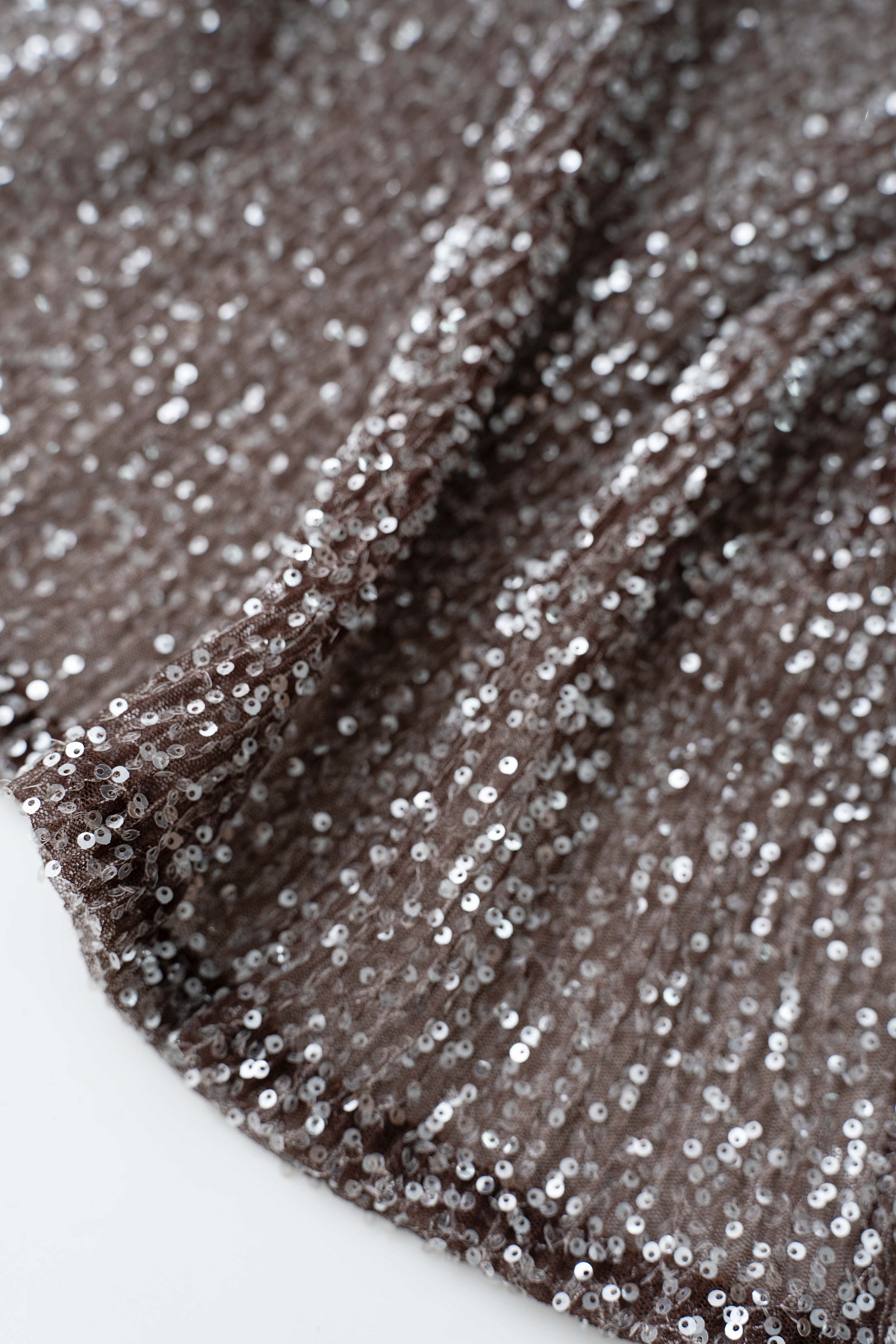 Прозрачный топ без рукавов и круглым вырезом горловины. Модель декорирована пайетками.