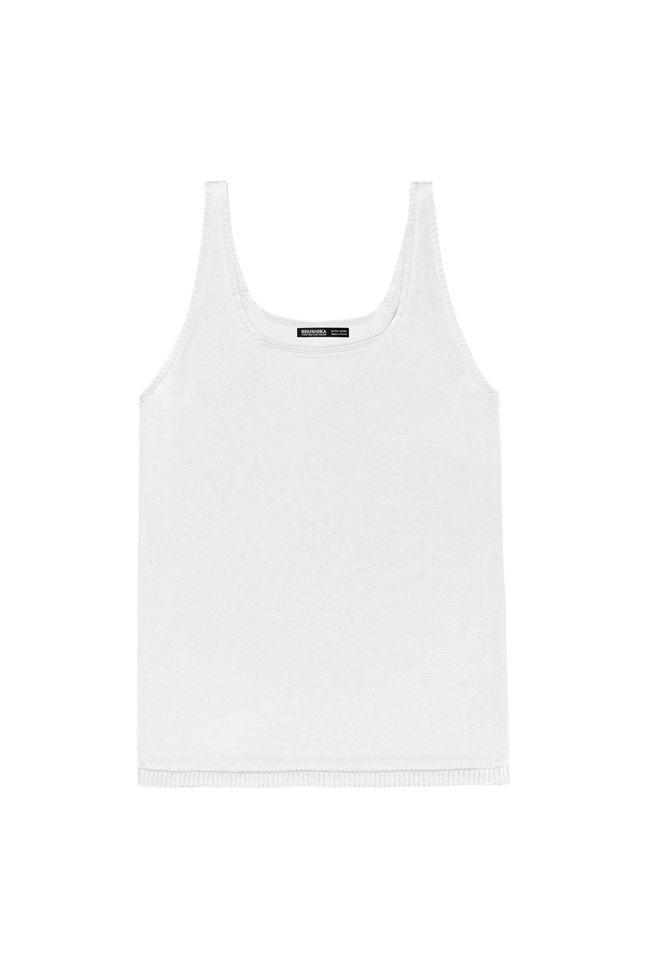 Цельновязаная майка из 100% вискозы на тонких бретелях.