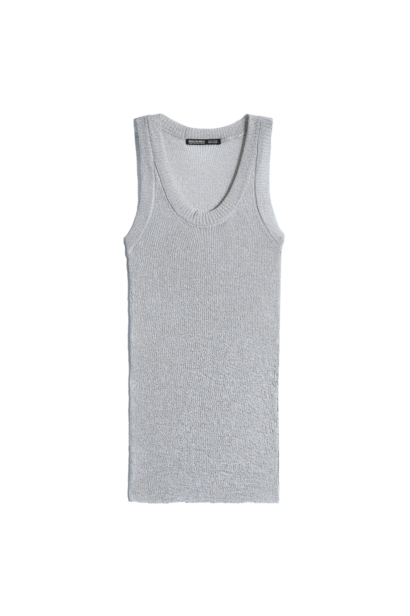 Трикотажный топ из вискозы с люрексом. Модель с U-образным вырезом горловины и широкими бретелями.