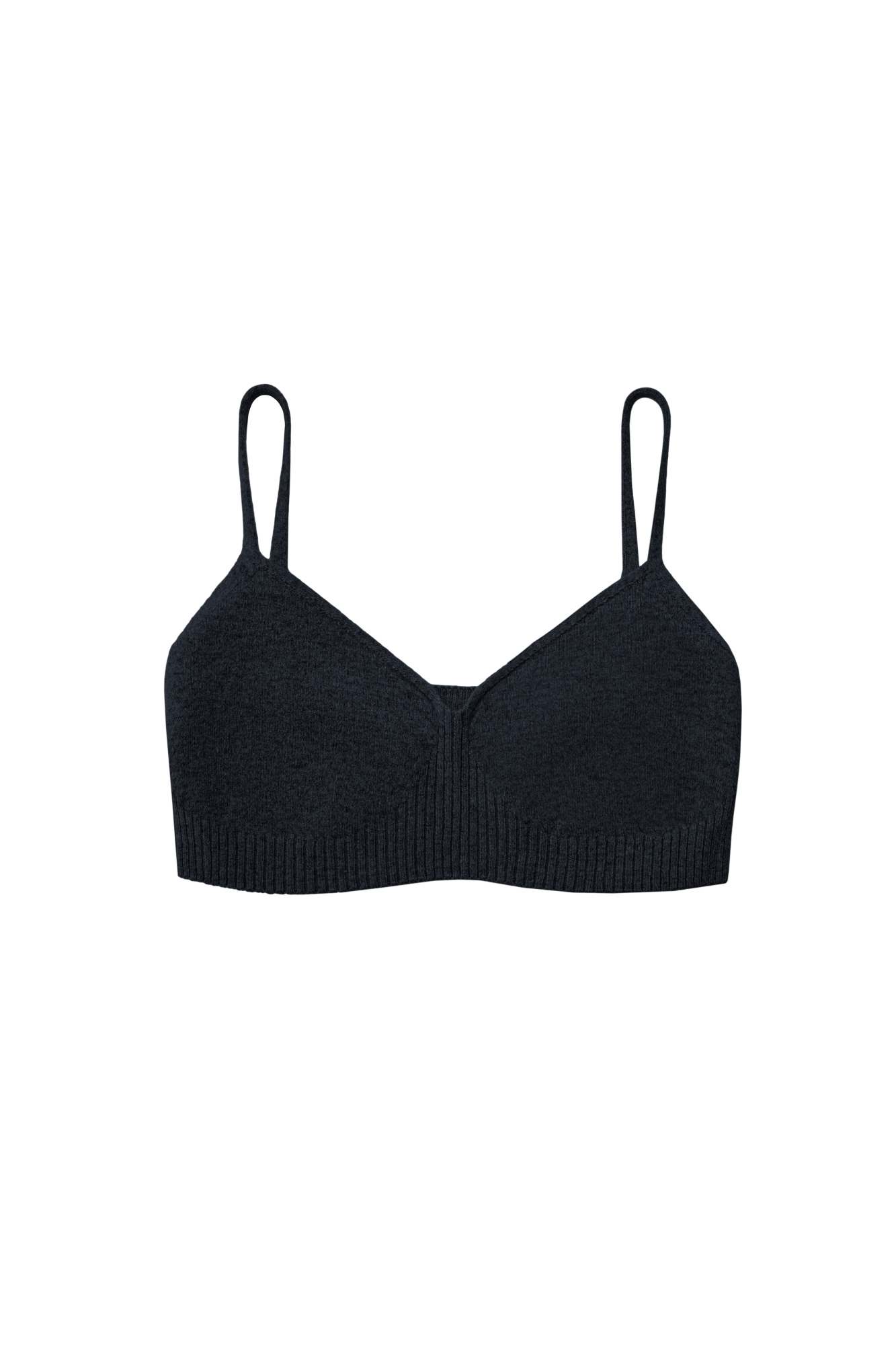 Базовый трикотажный топ, выполненный из кашемира и шерсти. Модель на тонких бретельках. вывязанными чашечками и эластичной резинкой в рубчик.