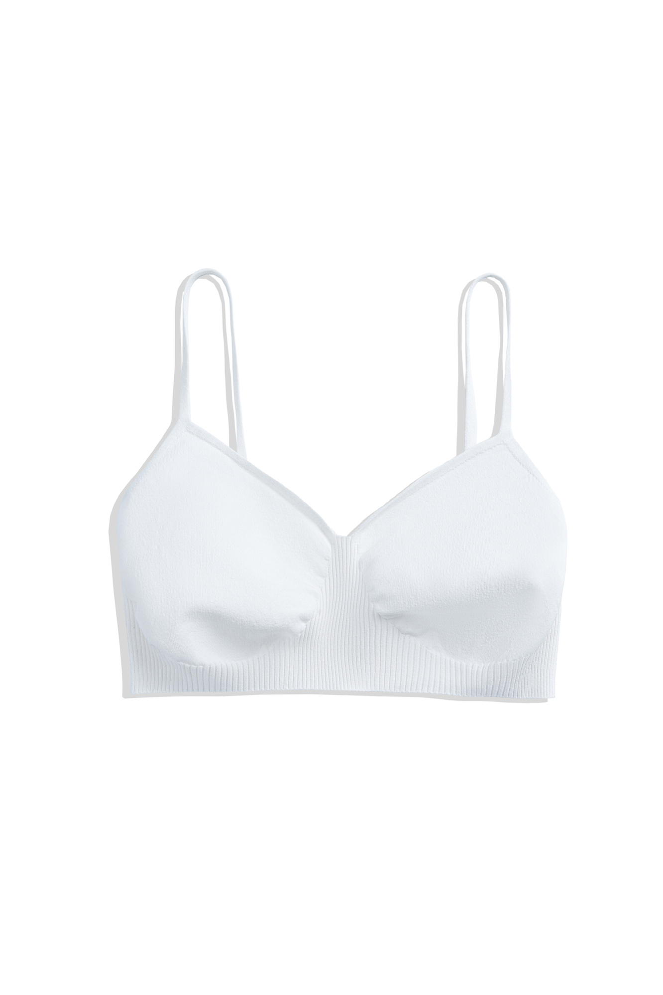 Бесшовный трикотажный топ из вискозы. Модель на тонких бретельках и вывязанными чашечками.