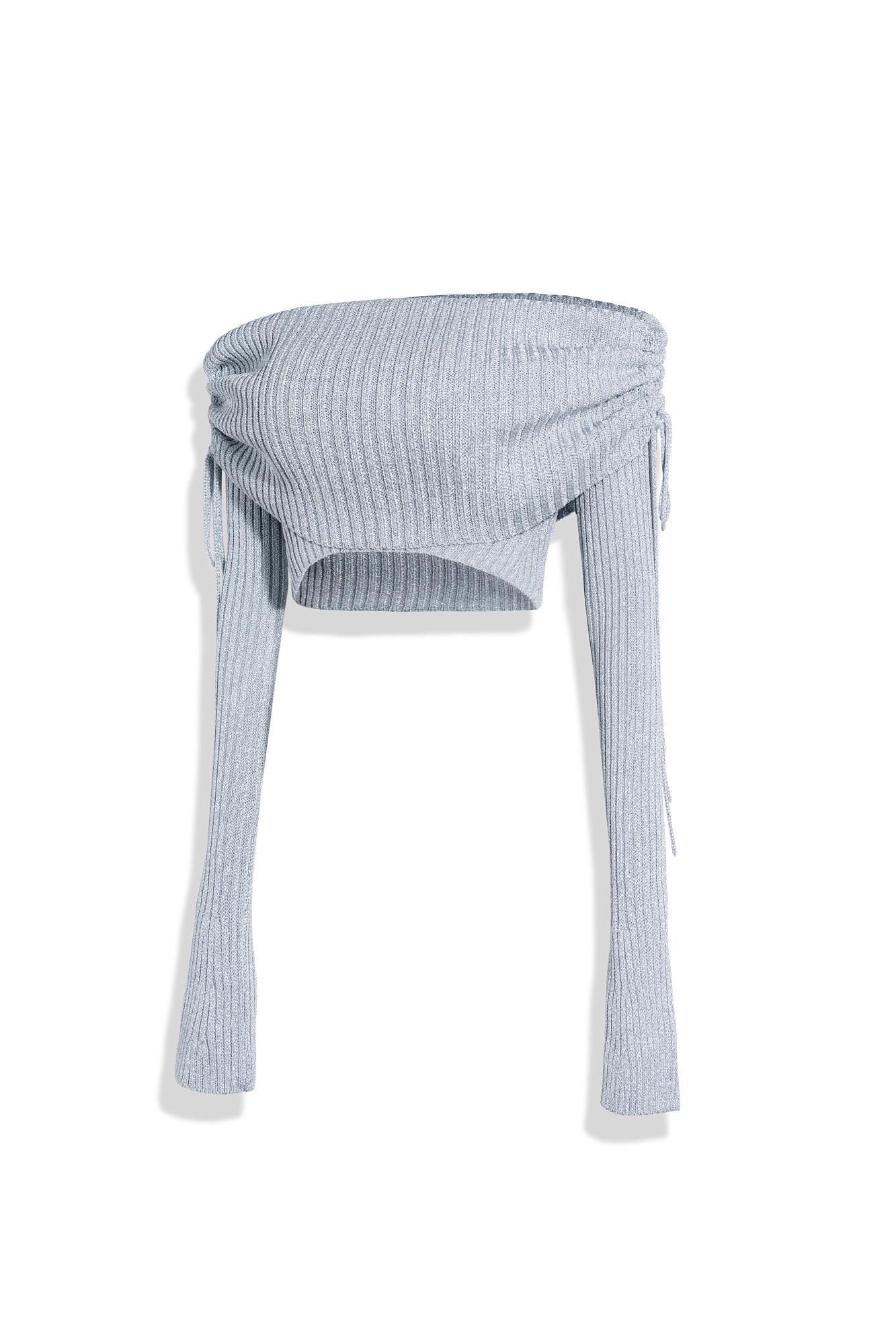 Трикотажный топ с люрексом. Модель укороченного силуэта с длинным рукавом и открытой линией плеч.