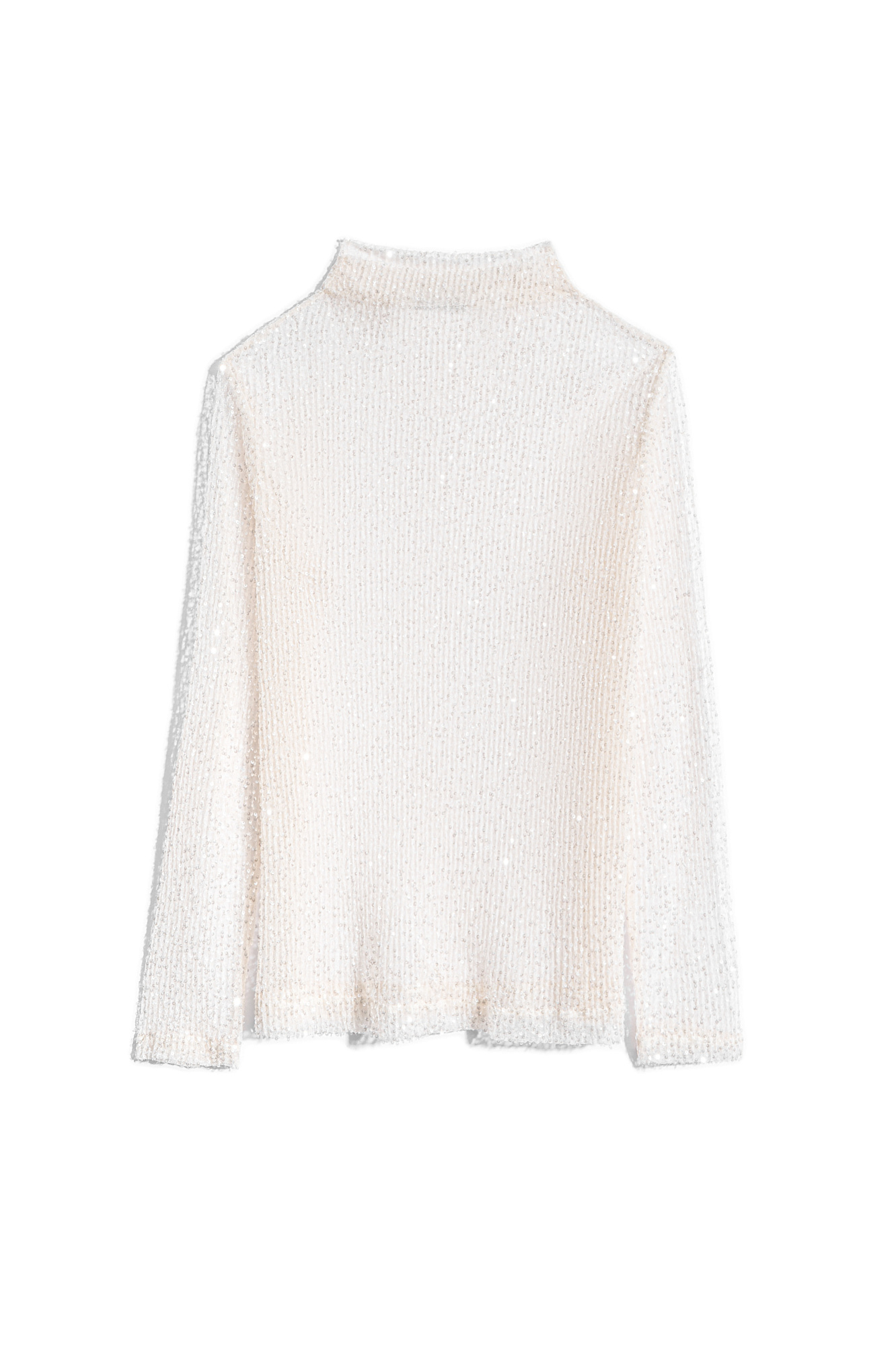 Прозрачный топ с длинными рукавами и воротником-стойкой. Модель декорирована пайетками.