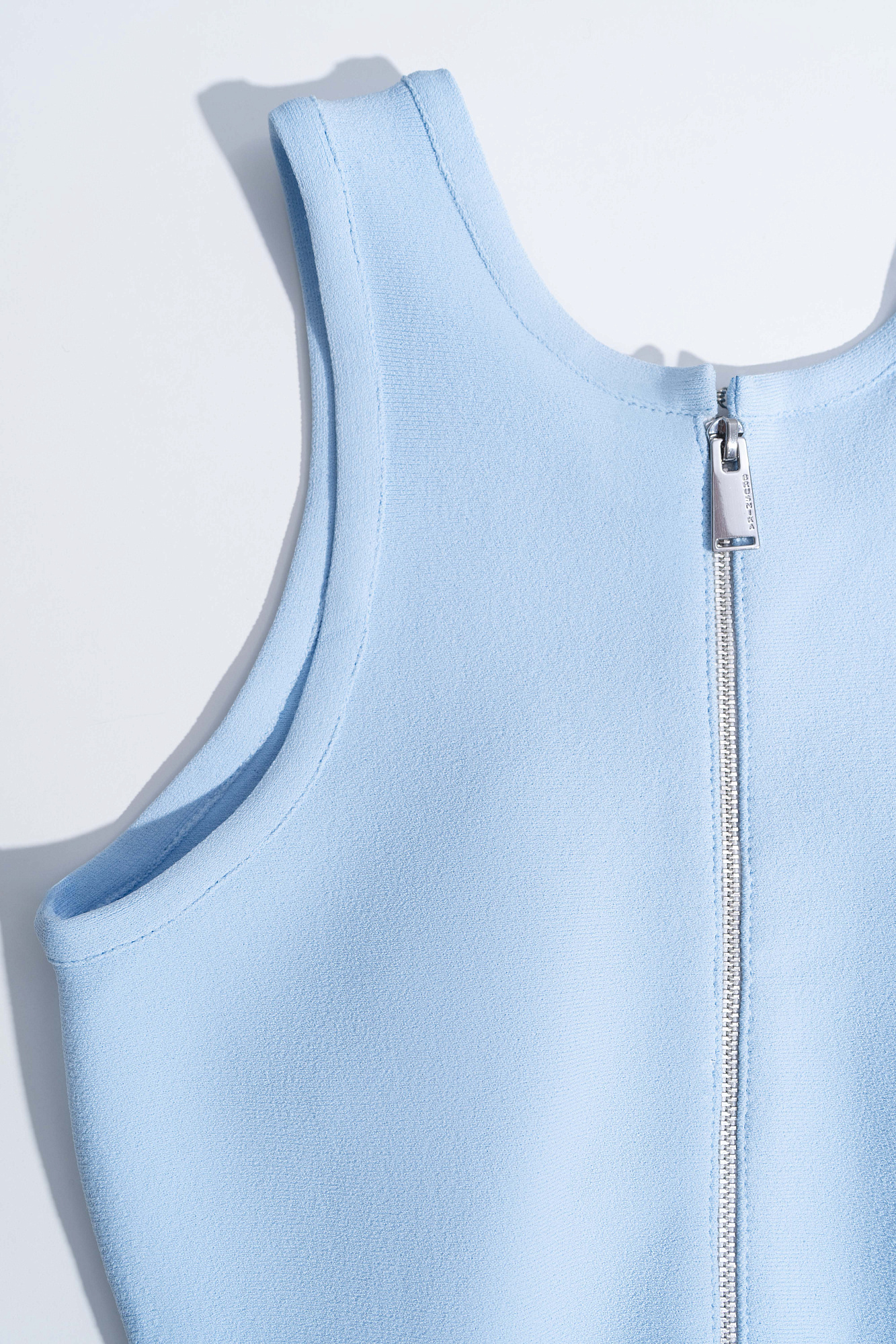 Трикотажный корсет из матовой вискозы. Модель на широких бретельках с баской. Застежка на молнию сзади. Изделие без подкладки.
