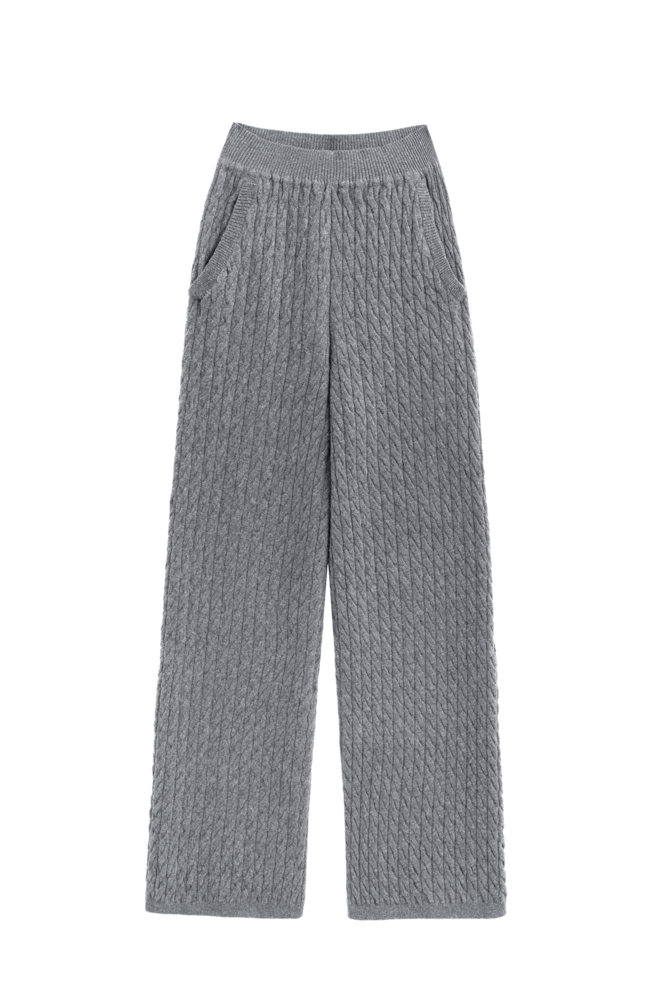 Трикотажные брюки с объемными косами из 100% шерсти мериноса экстрафайн. Модель на эластичной резинке и глубокими боковыми карманами.