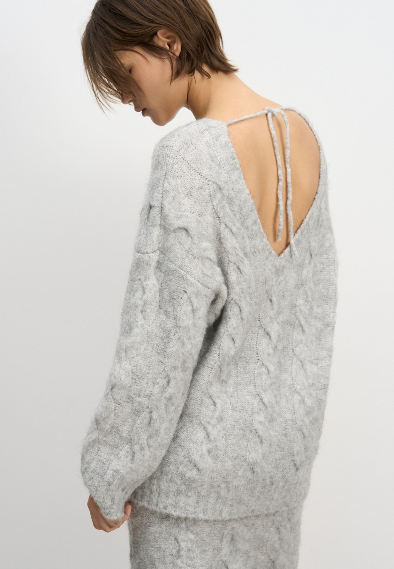 Трикотажный джемпер с открытой спиной и косами