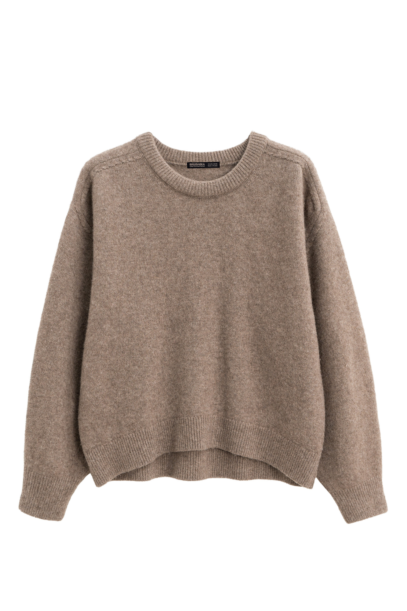 Трикотажный джемпер из шерсти яка с добавлением шерсти мериноса экстрафайн. Модель свободного силуэта, с вывязанной круглой горловиной и рукавом реглан с декоративными сбавками. Низ изделия и манжеты рукавов выполнены в рубчик.