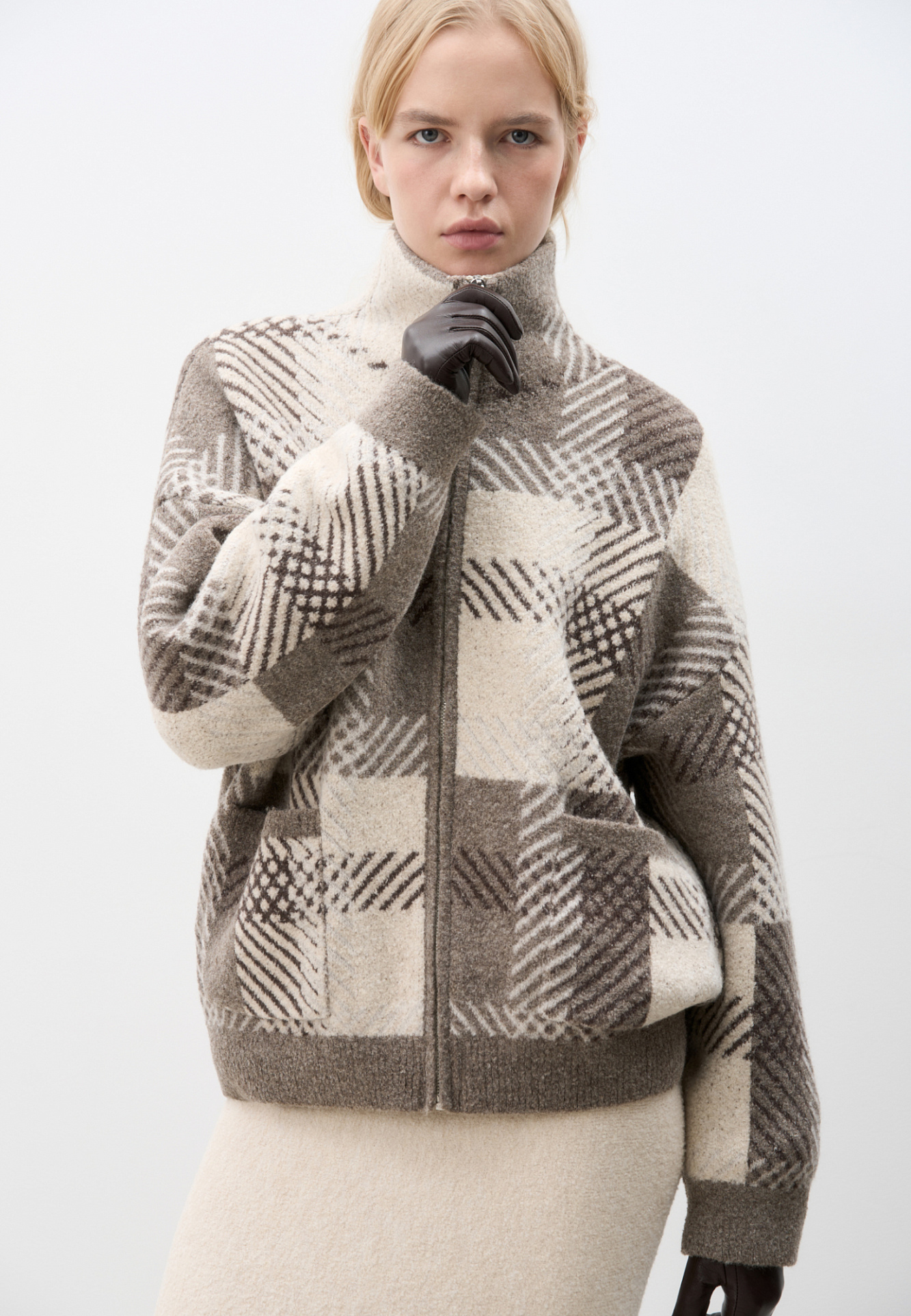 Трикотажный бомбер в клетку