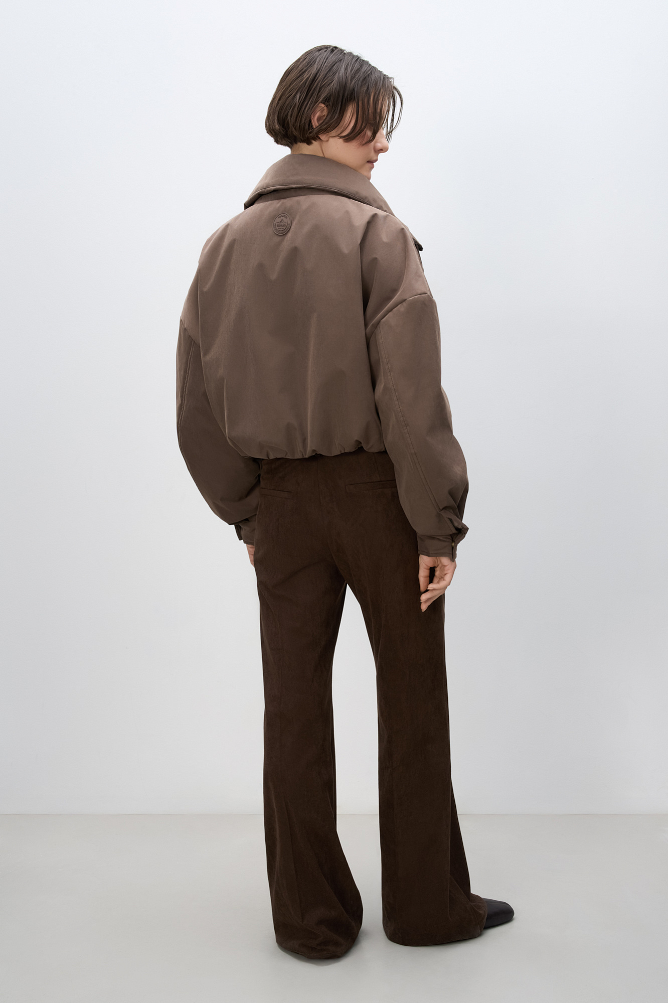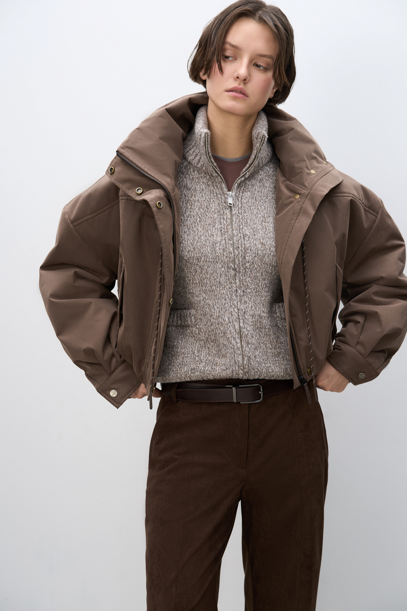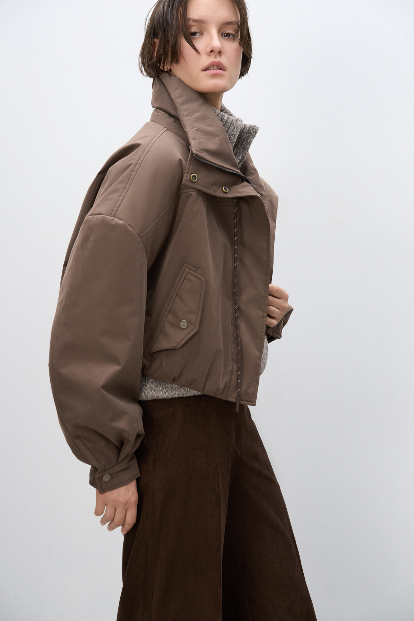 Короткий бомбер с воротником-стойкой
