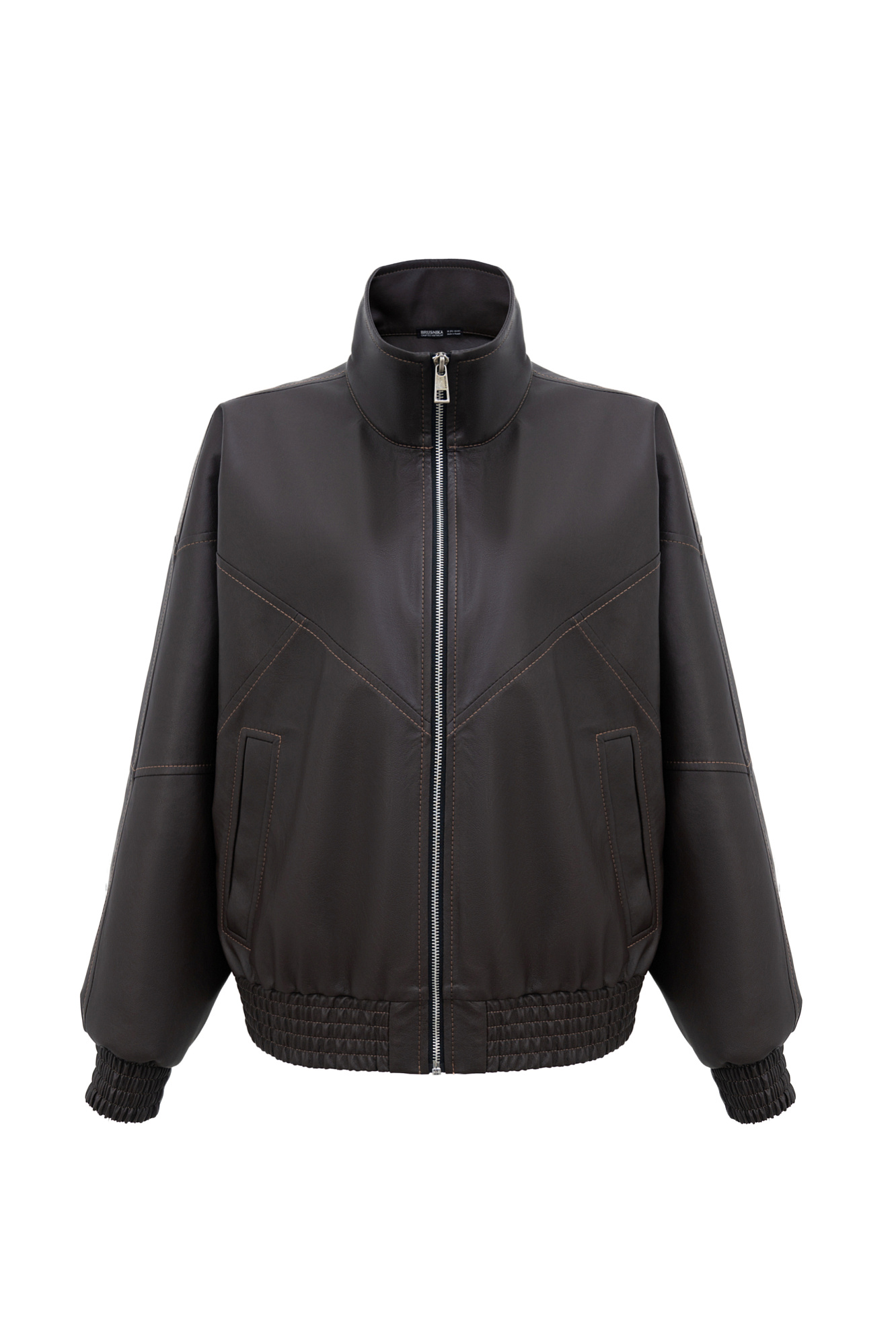 Бомбер из экокожи с боковыми карманами. Модель свободного силуэта с воротоником стойкой. Низ изделия и манжеты рукавов выполнены на резинке. Брендированный ярлык на спине. Застежка на молнию. Без подкладки.