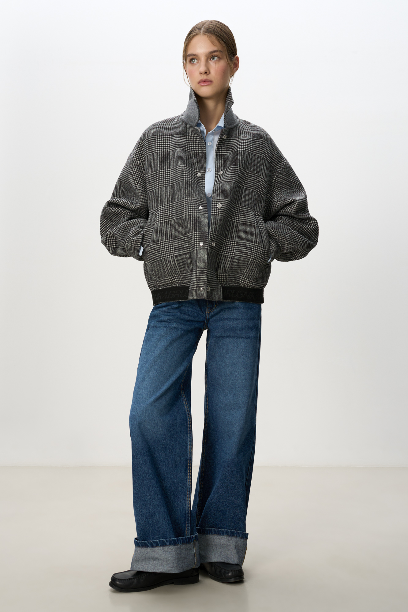 Двусторонний бомбер из 100% шерсти. Модель прямого свободного силуэта со спущенной линией плеч, отложным воротником и двумя накладными карманами. Застежка на магнитные кнопки.