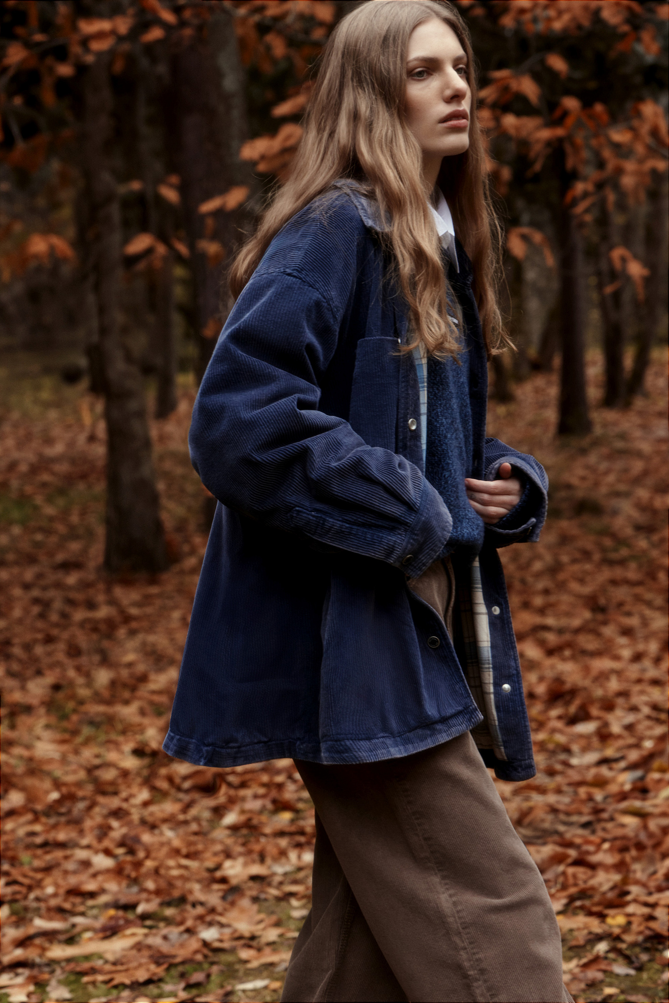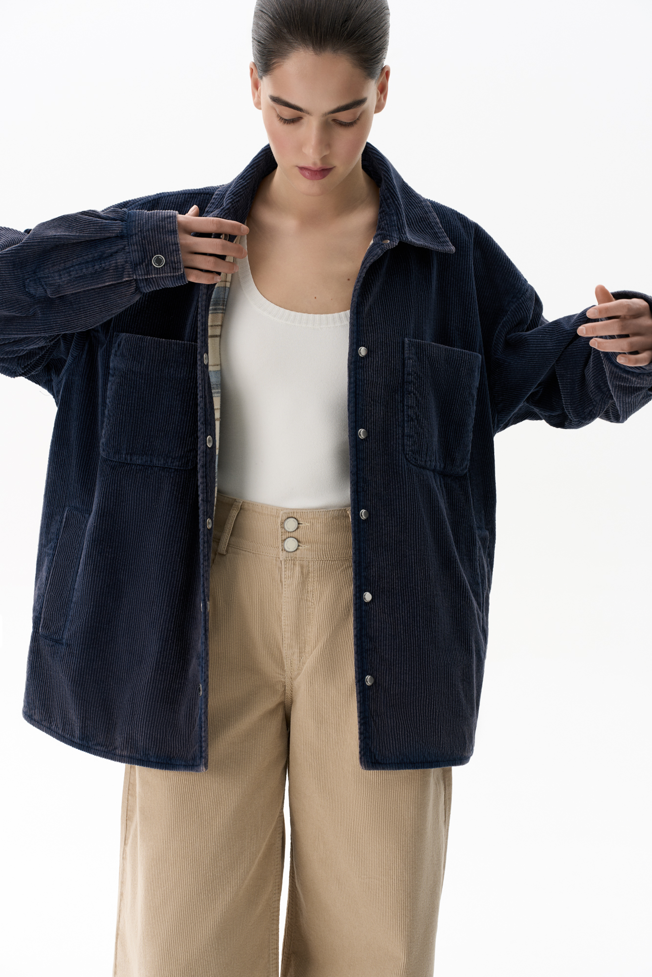Вельветовая куртка из хлопка. Модель прямого кроя с отложным воротником, двумя накладными карманами на груди, двумя прорезными карманами и застежкой на кнопки. Изделие на подкладке.