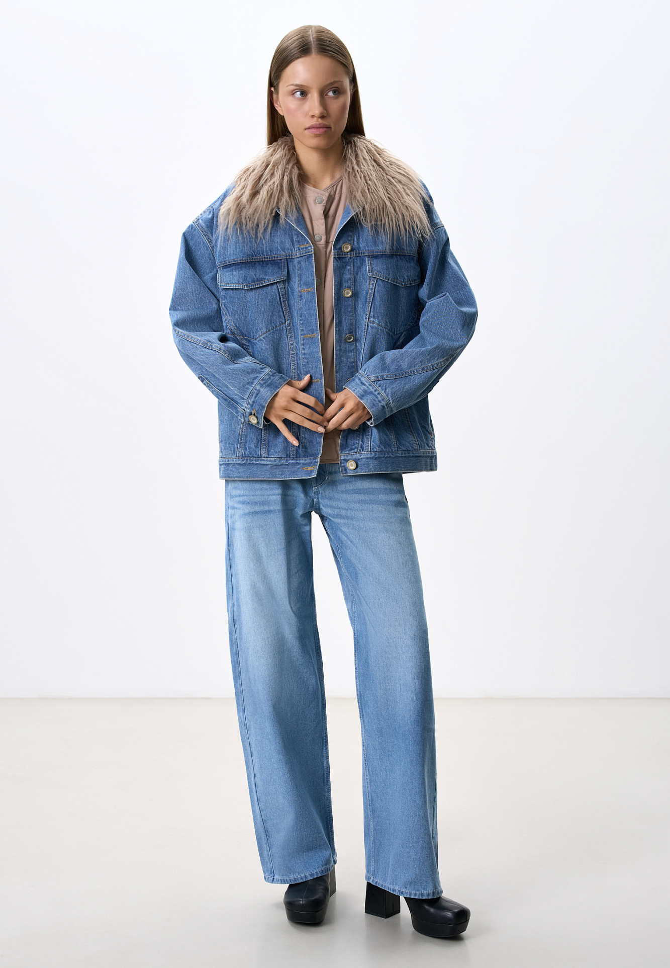 Джинсовая куртка со съемным меховым воротником. Отложной воротник. Длинные рукава с манжетами на кнопках. Нагрудные карманы с клапанами. Застежка на металлические кнопки. В комплекте идет жилет на синтепоне на магнитных кнопках, который позволит носить куртку в более прохладную погоду.