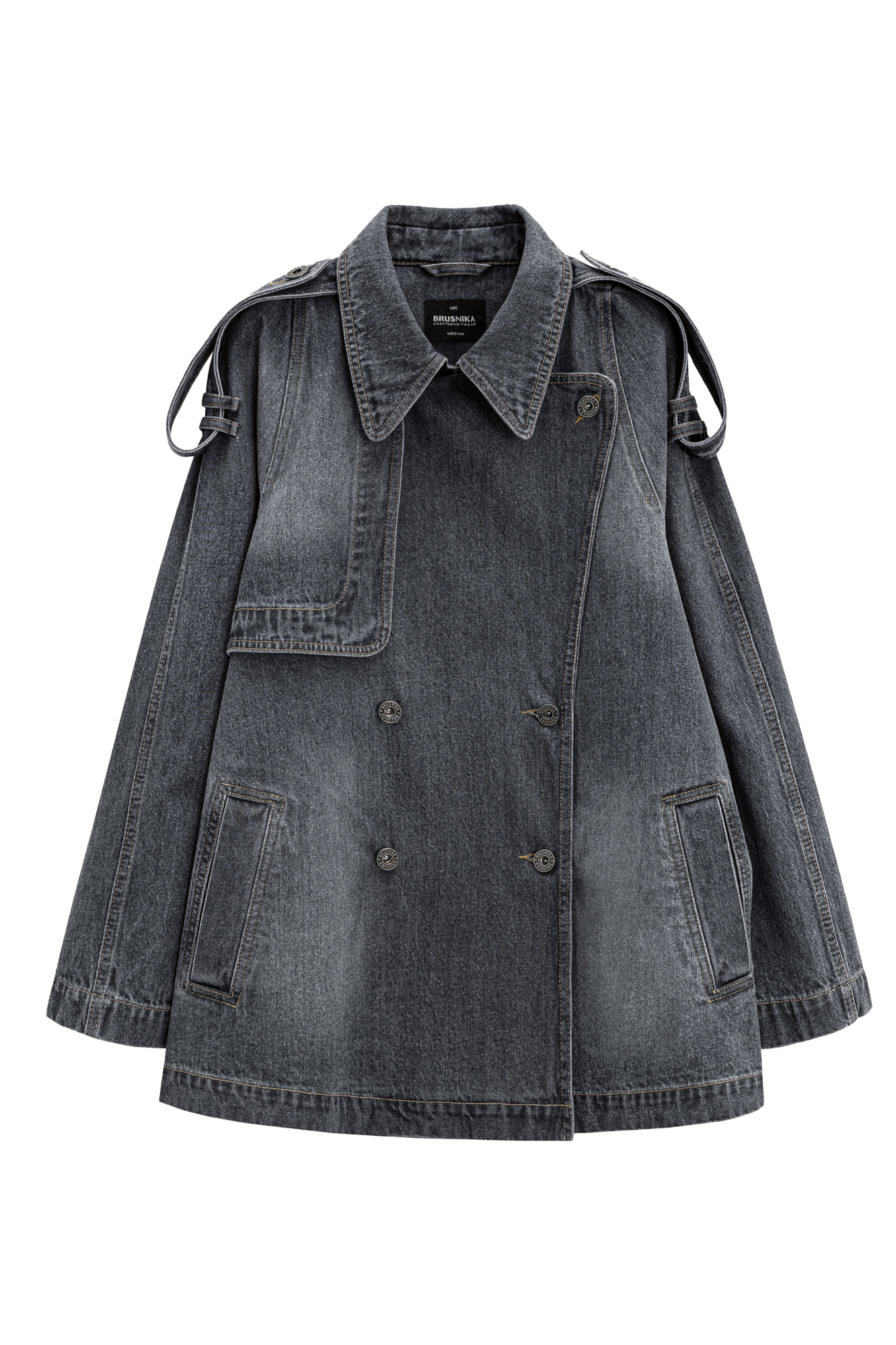 Джинсовый тренч с кокеткой и патами