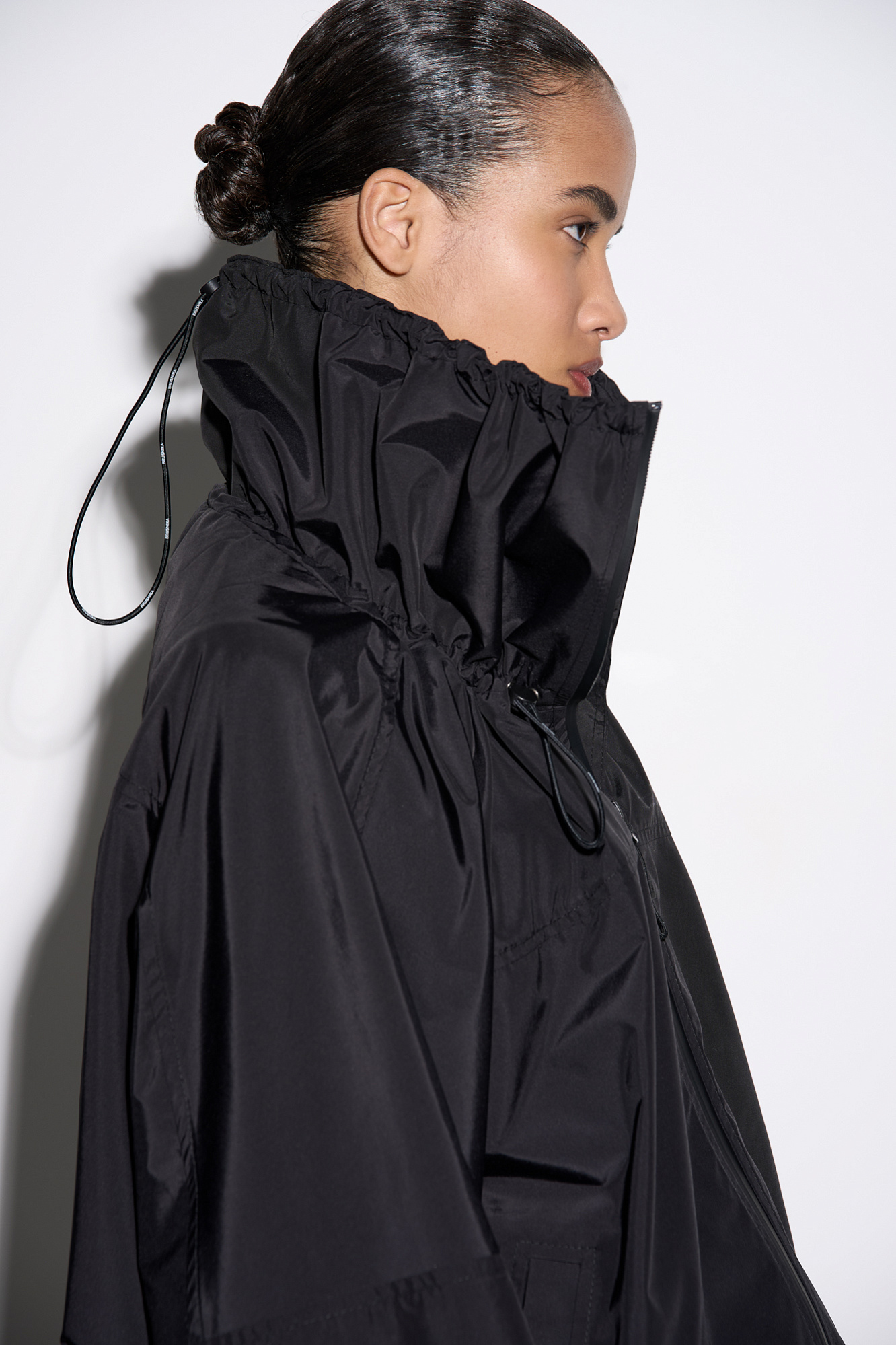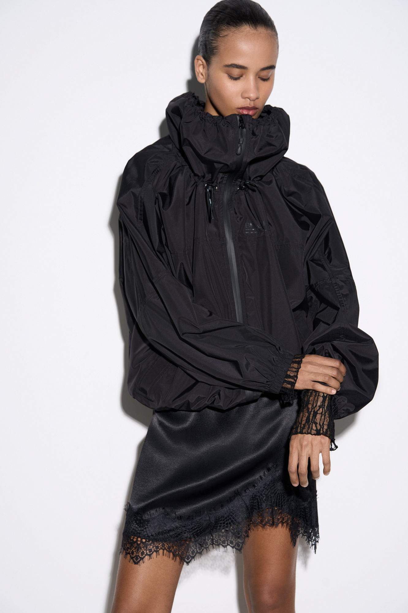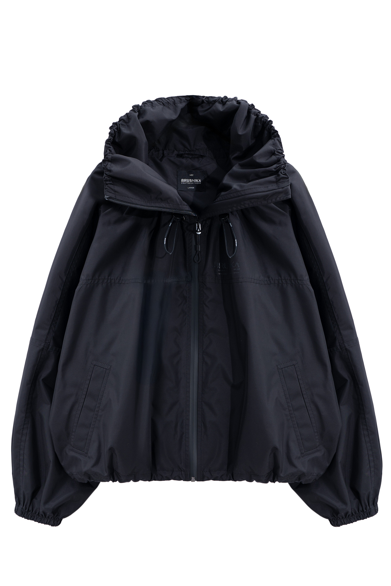 Куртка-ветровка из полиэстра. Модель свободного силуэта с высоким воротником-стойкой нарегулируемой кулиске, карманами и застежкой на молнию. Манжеты рукавов выполнены на резинке. Логотип бренда на груди.