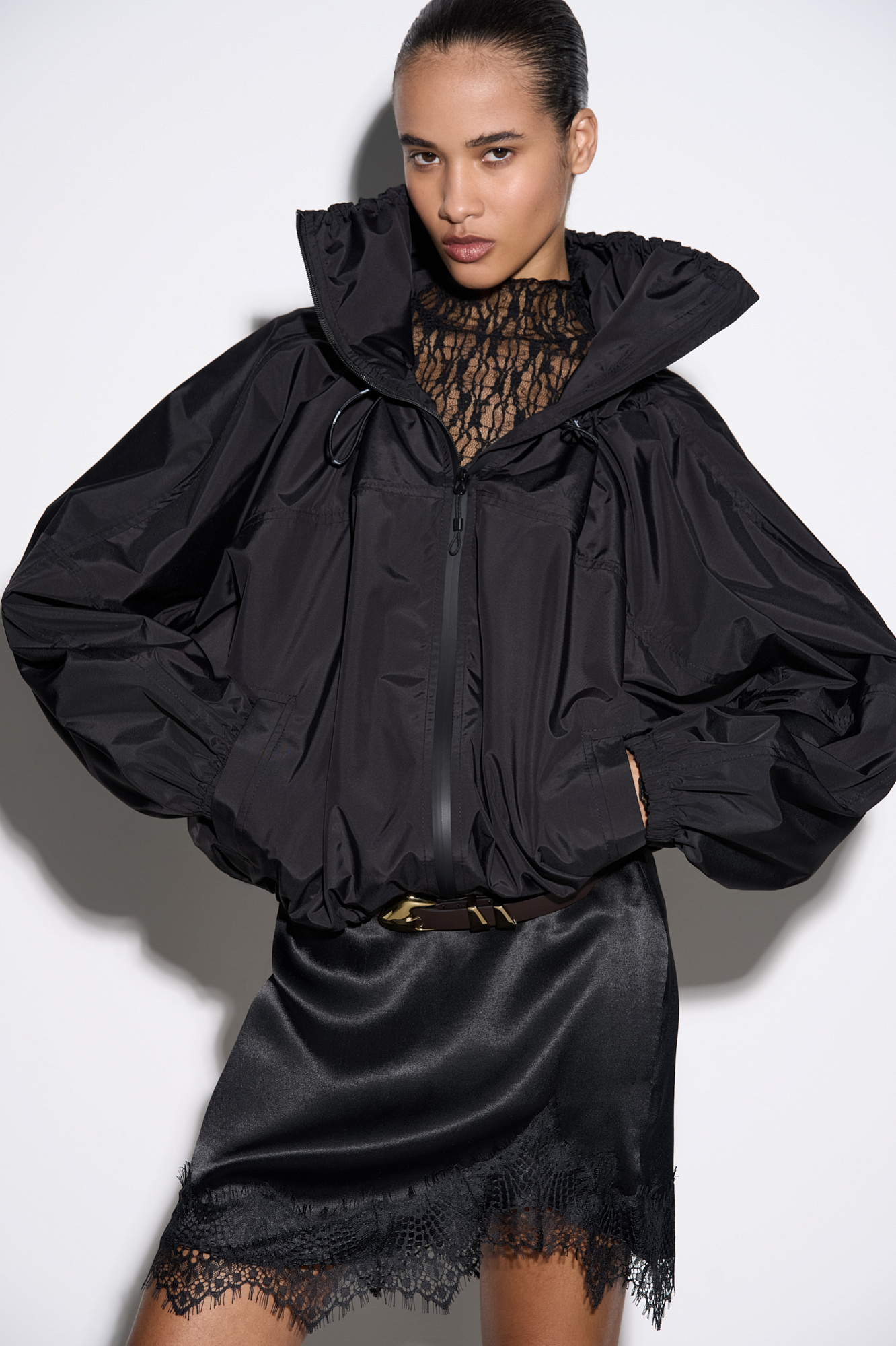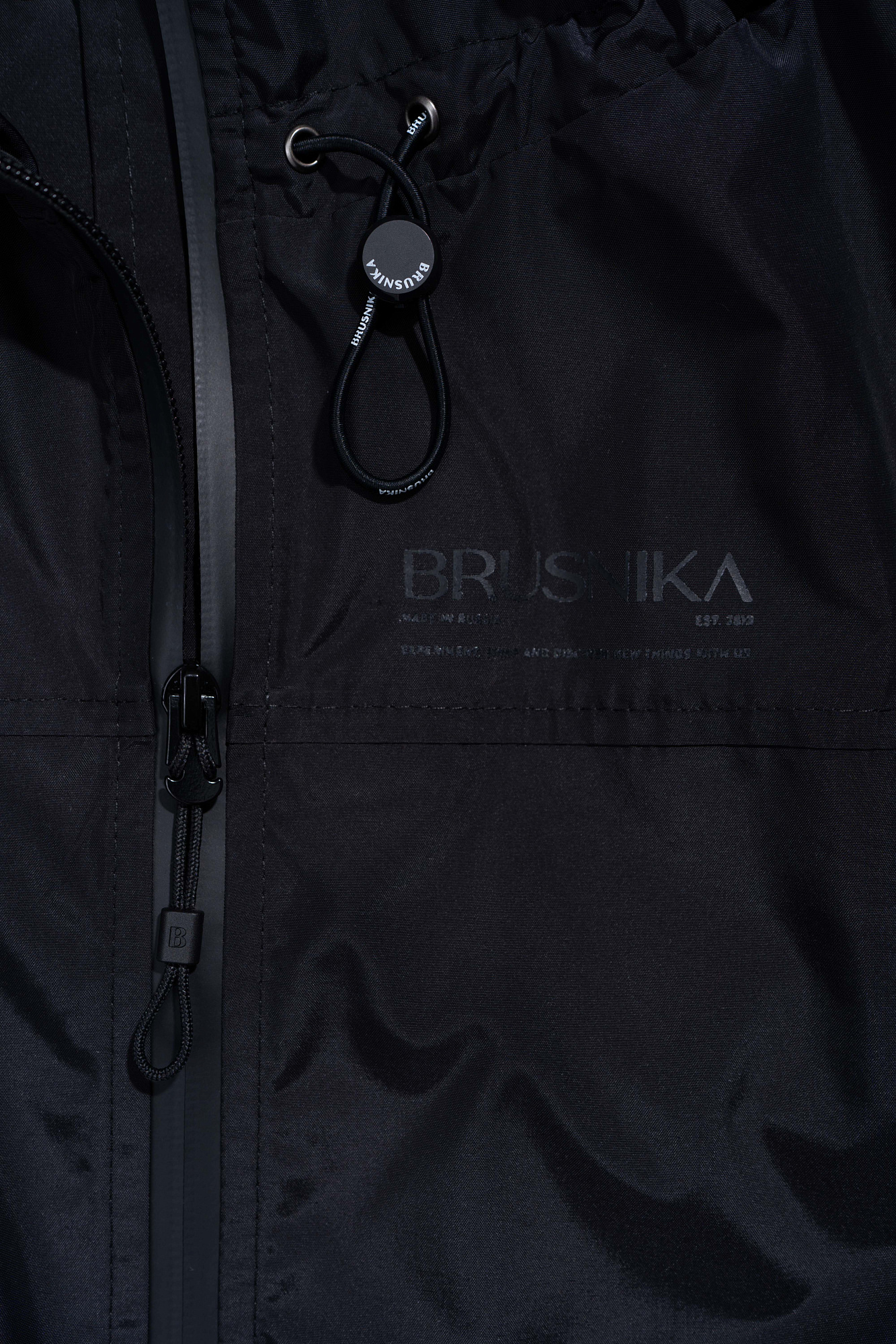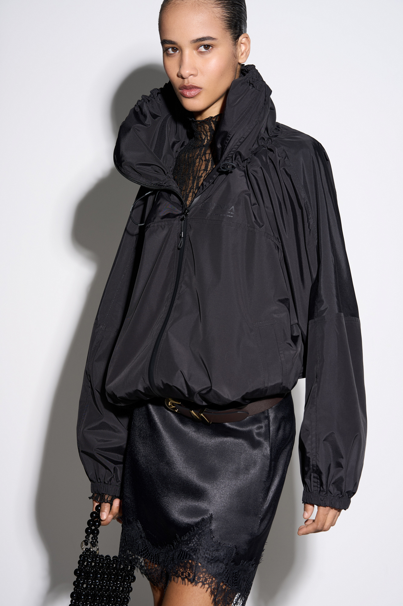 Куртка-ветровка из полиэстра. Модель свободного силуэта с высоким воротником-стойкой нарегулируемой кулиске, карманами и застежкой на молнию. Манжеты рукавов выполнены на резинке. Логотип бренда на груди.