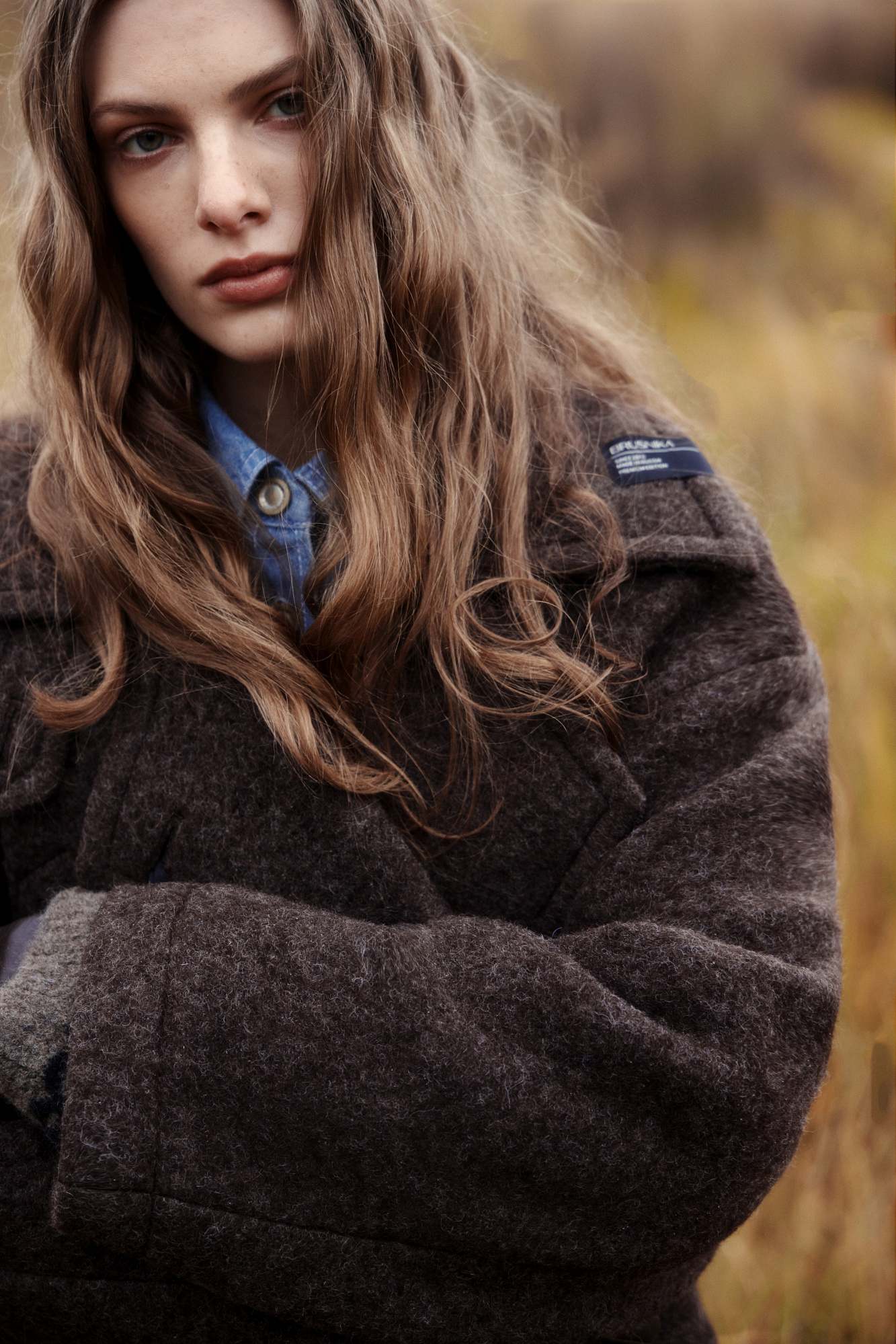 Модель прямого кроя со спущенной линией плеч, карманами на груди и накладными карманами с клапанами. Застежка на пуговицы. Изделие декорировано брендированными ярлыками на воротнике. На подкладке.