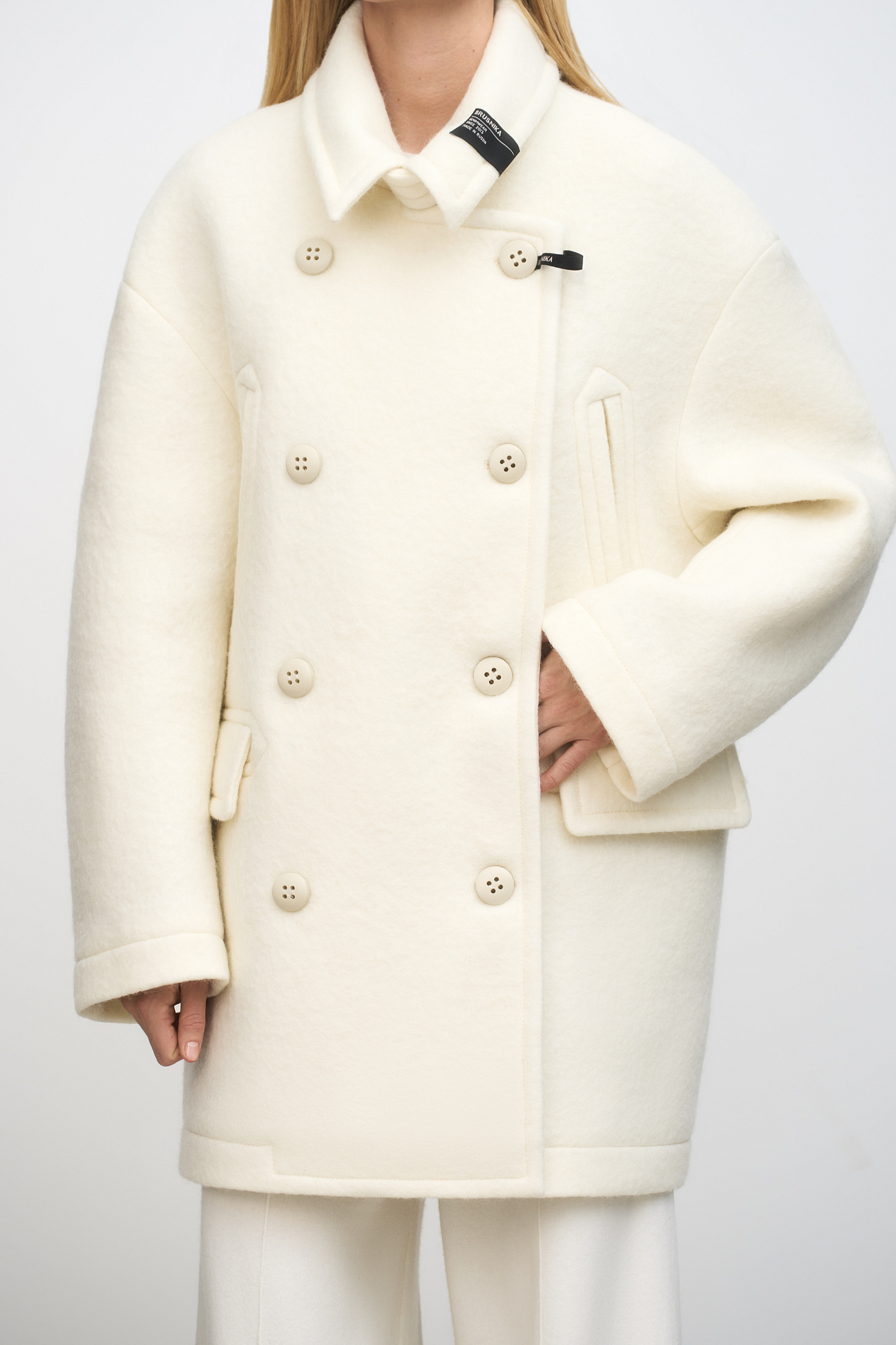 Двубортное пальто из шерсти.