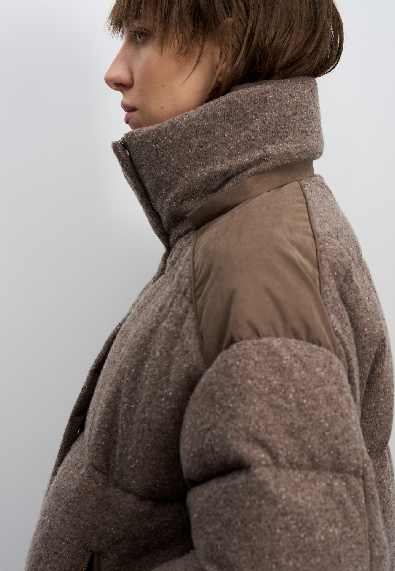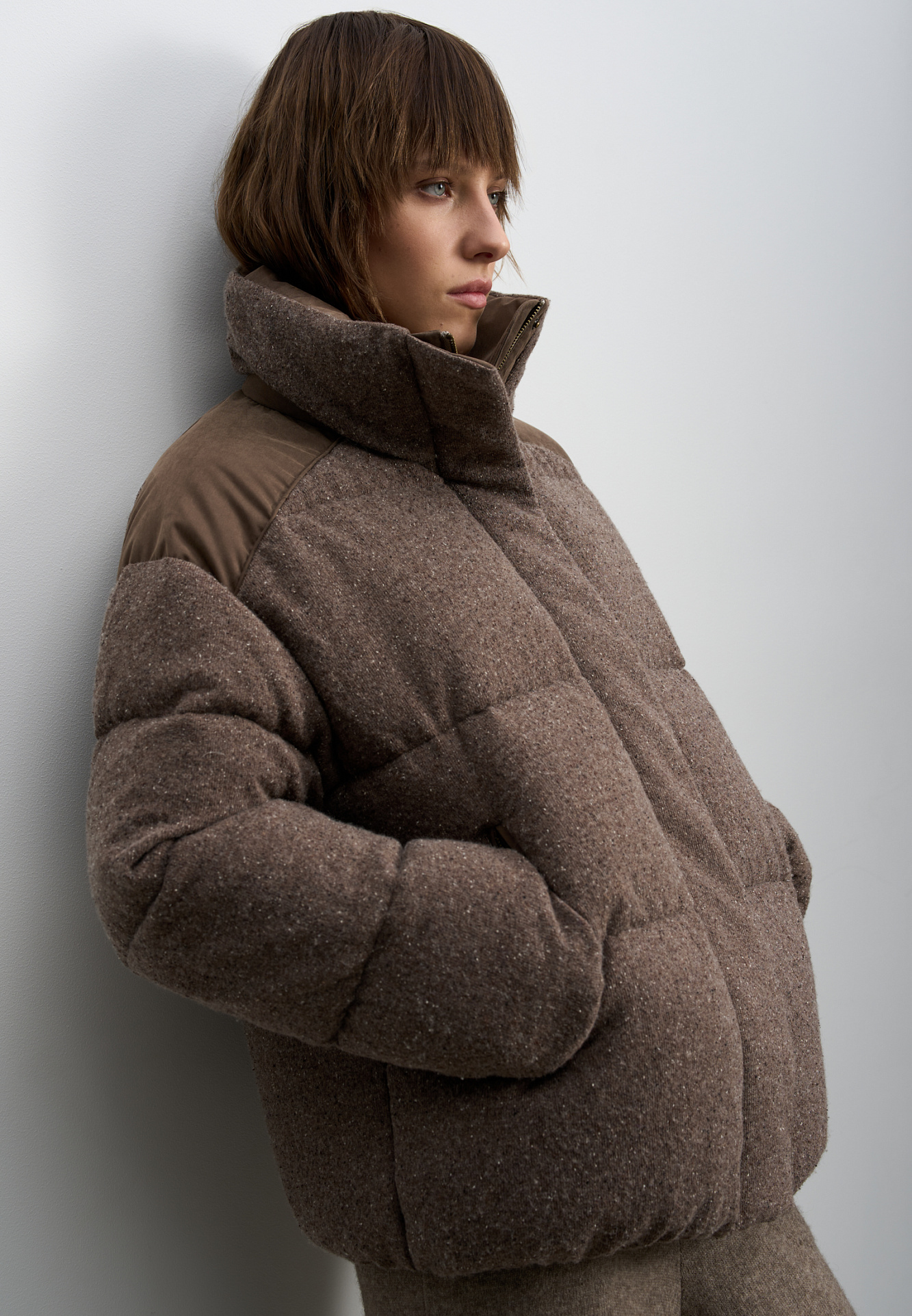 Состав: Верх:шерсть40%,вискоза30%,шелк15%,нейлон15% Наполнитель:пух90%,перо10%