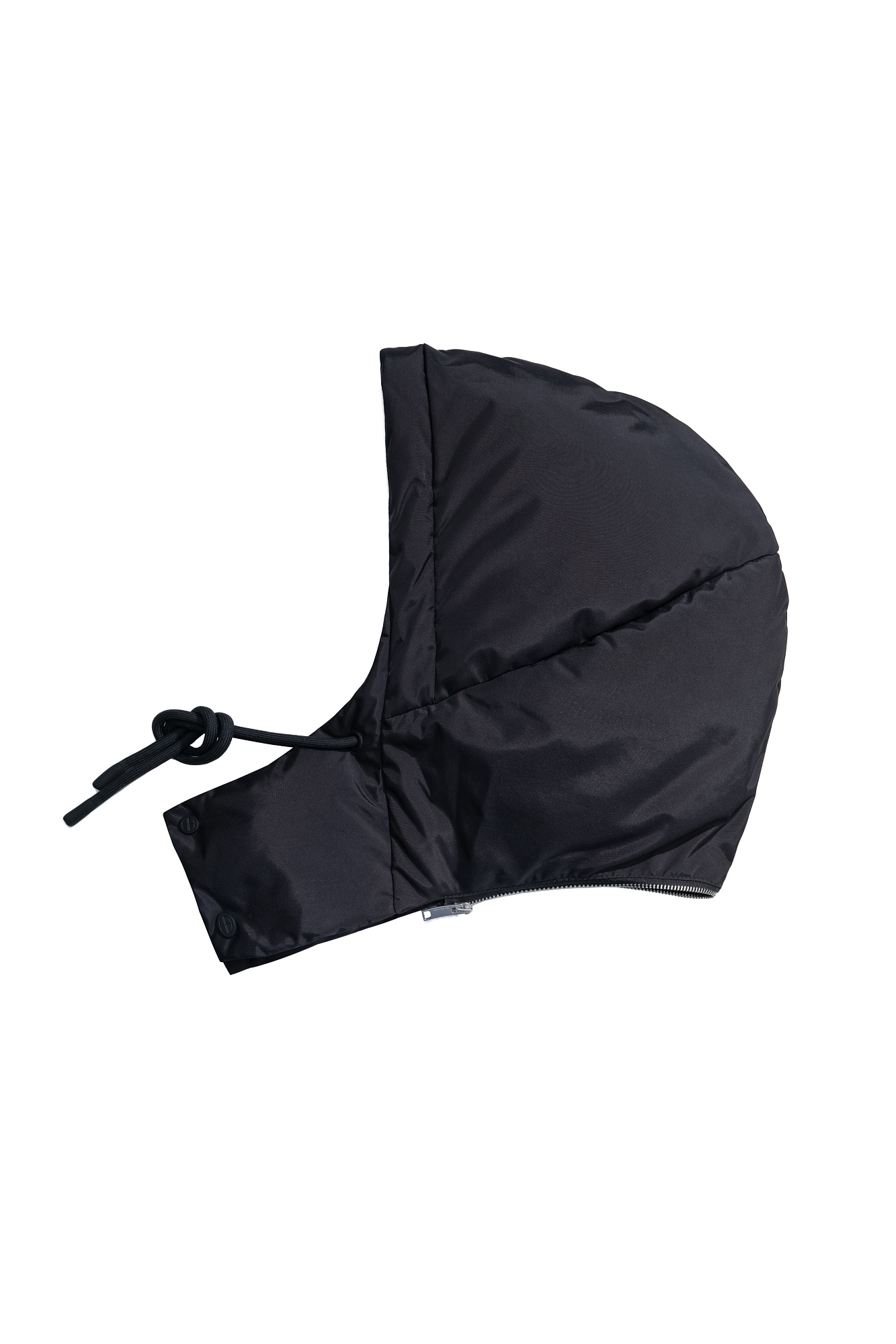 Длинный стеганый пуговик с капюшоном на кулиске. Модель свободного силуэта, с воротником-стойкой, трикотажными манжетами и боковыми карманами. Застежка на молнию под планкой с брендированными пуговицами.