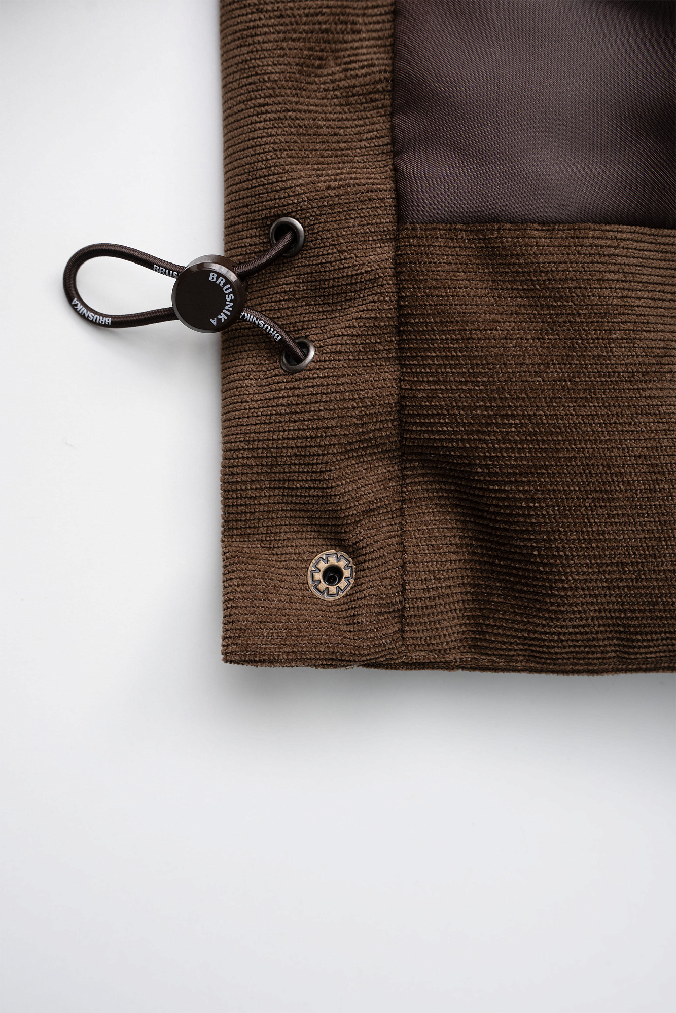 Пуховик с воротником-стойкой, съемным капюшоном и графичной стежкой с двойной отстрочкой. Модель имеет два варианта застежки на металлические кнопки. Низ изделия выполнен на кулиске.