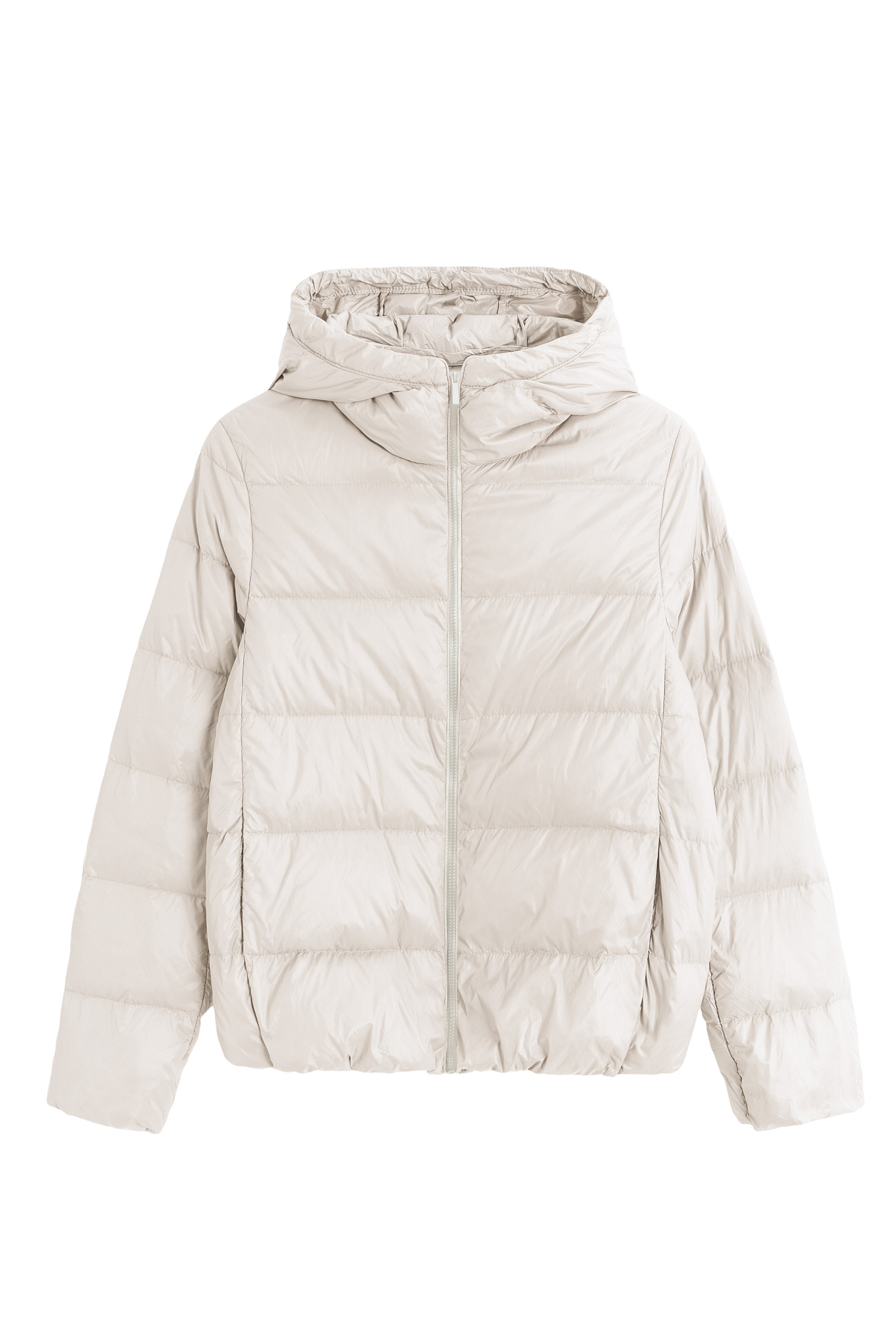 Супертонкий и ультралёгкий пуховик с карманами и капюшоном, который складывается в чехол. Наполнитель натуральный пух 90% и перо 10%. Чехол в комплекте. Средний показатель водонепроницаемости, можно носить в сухую погоду или моросящий дождик.