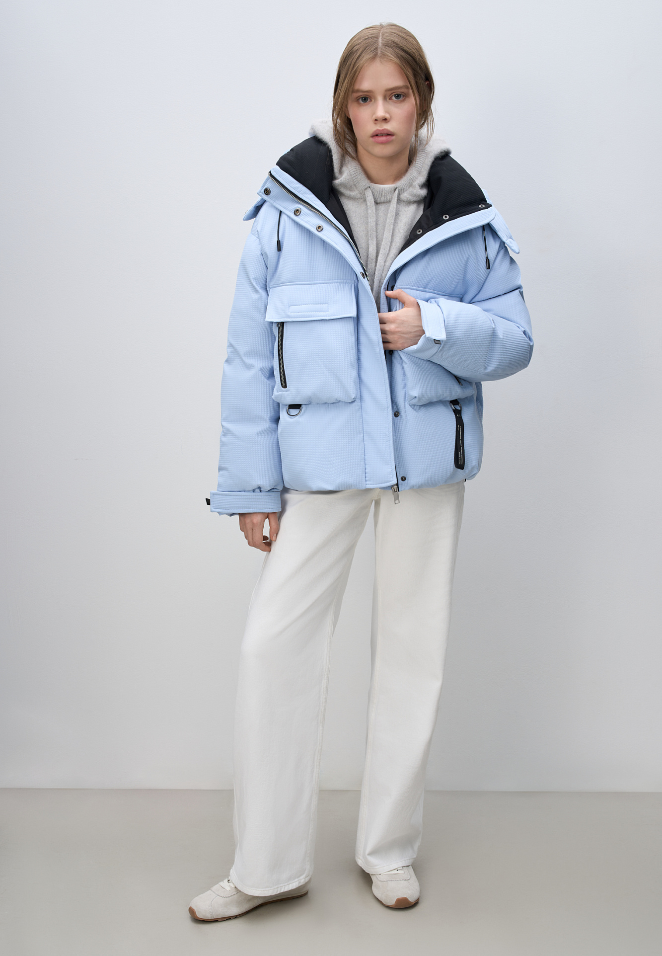 Пуховик с воротником-стойкой и капюшоном