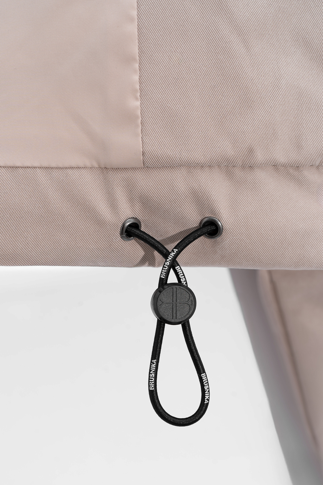 Пуховик с воротником-стойкой, съемным капюшоном и графичной стежкой с двойной отстрочкой. Модель имеет два варианта застежки на металлические кнопки. Низ изделия выполнен на кулиске.
