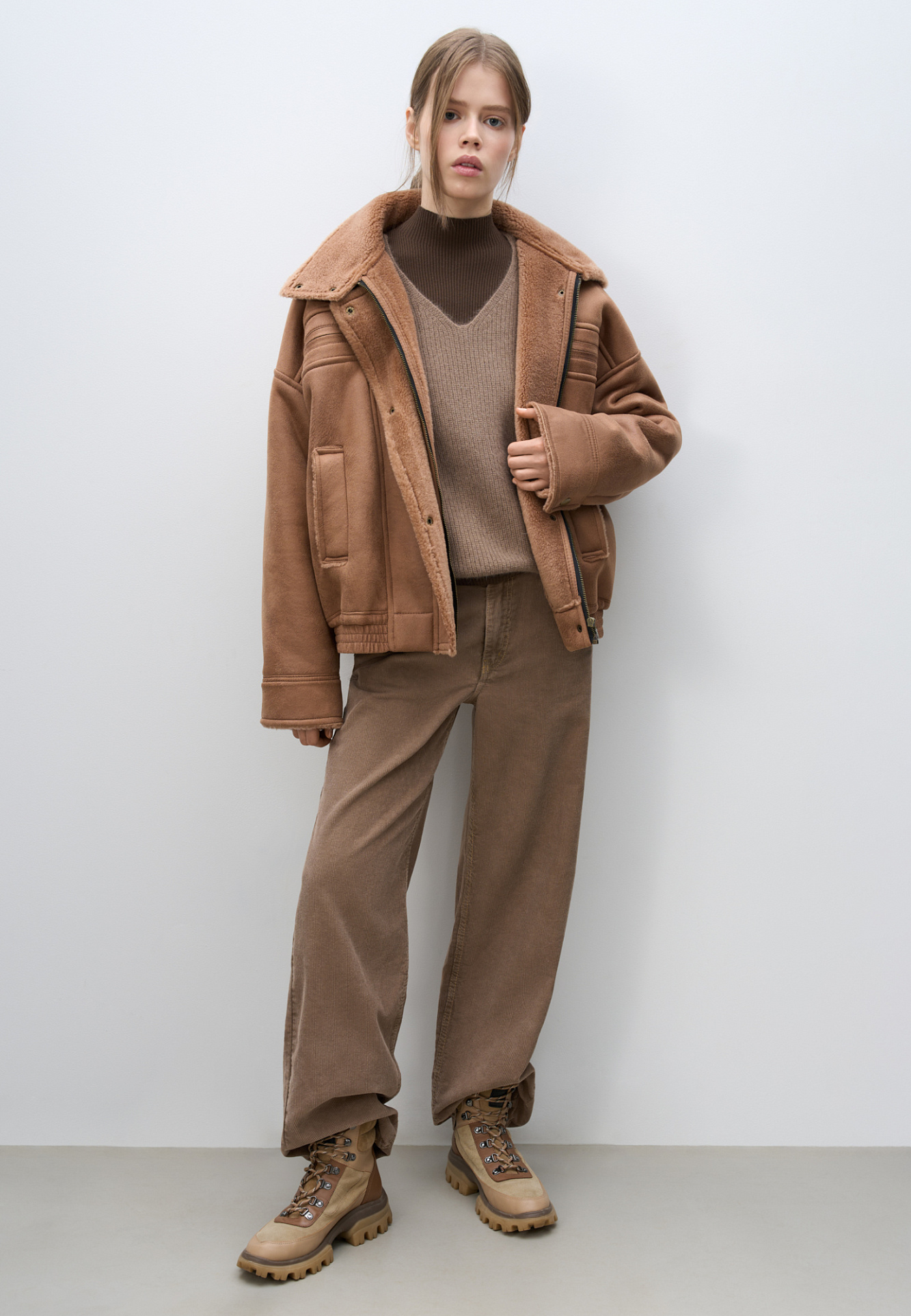 Шерстяной бомбер с воротником-стойкой