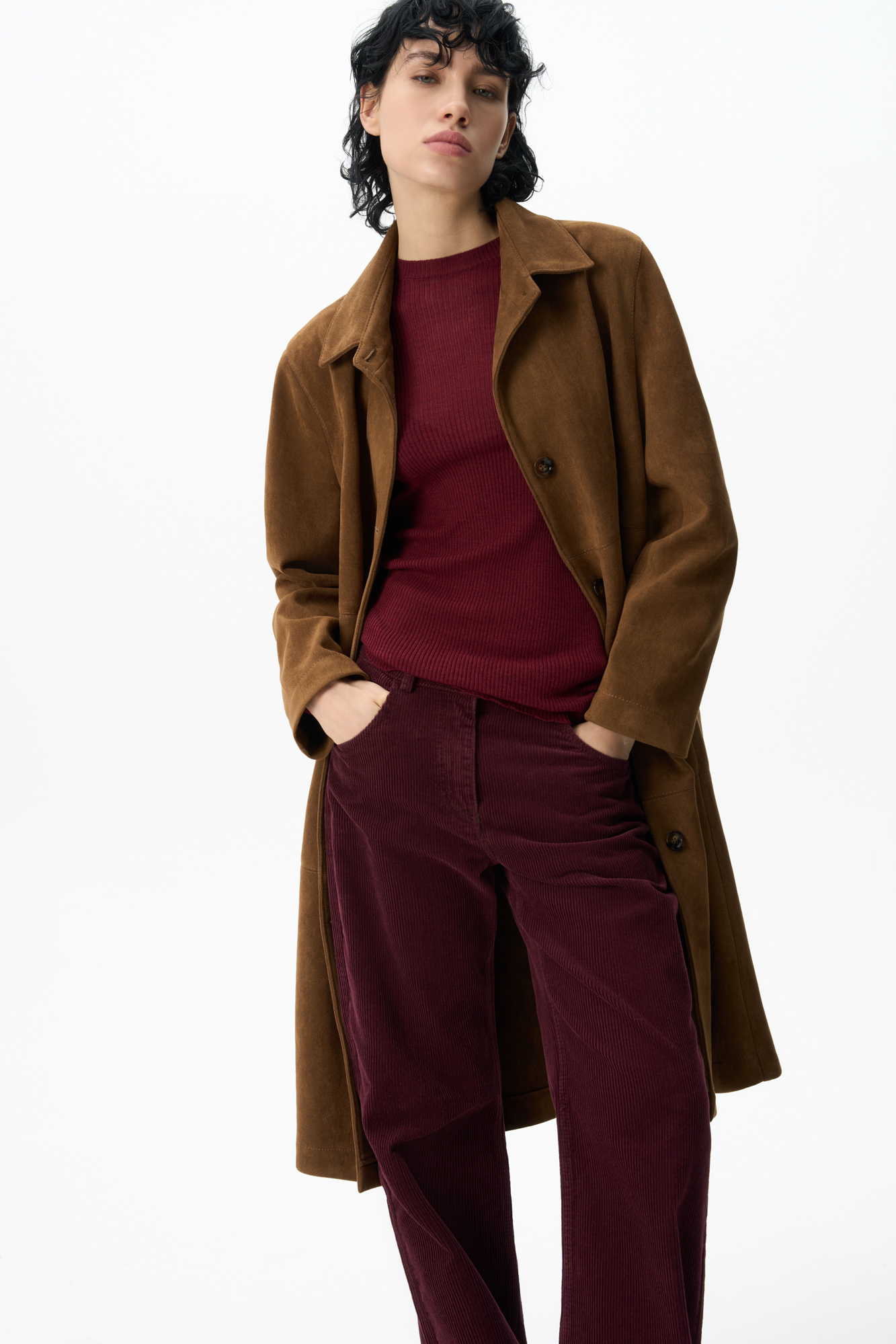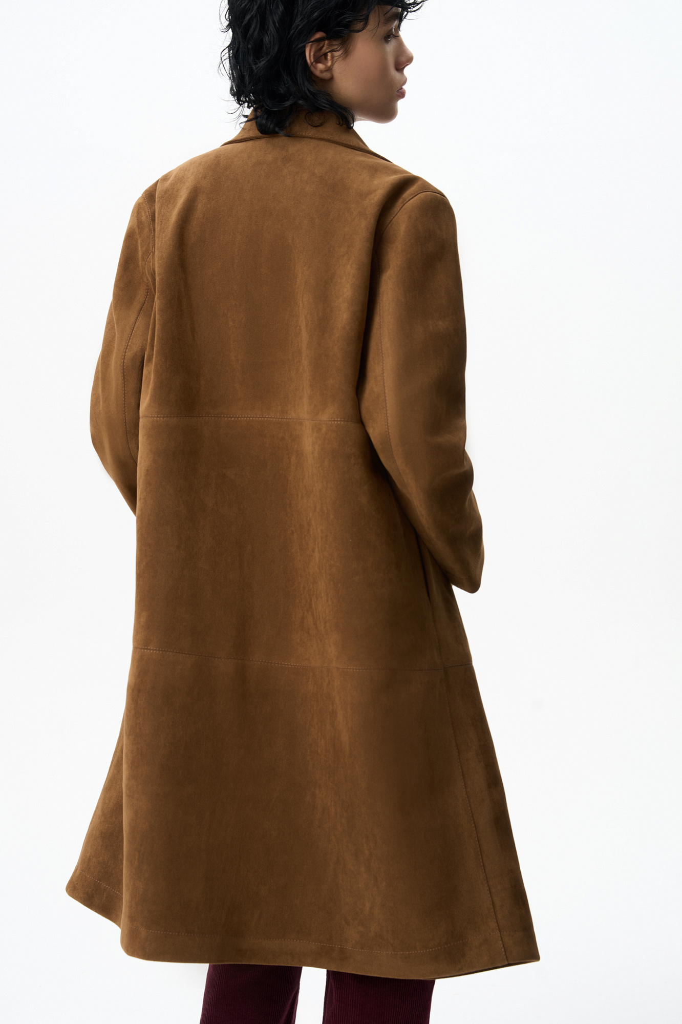 Двубортный тренч под замшу