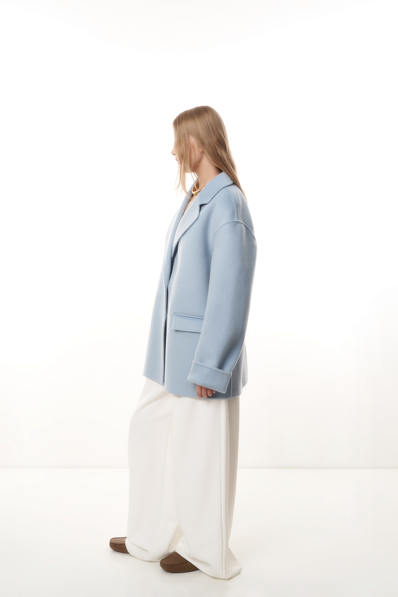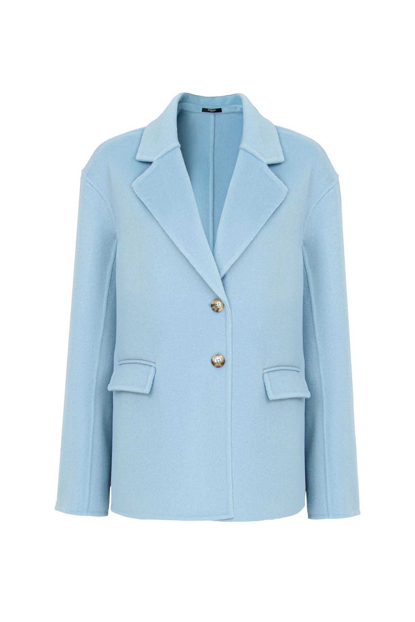 Классический жакет из 100% шерсти без подкладки. Отложной воротник с прямоугольными лацканами, длинные рукава и накладные карманы. Застежка на пуговицы.