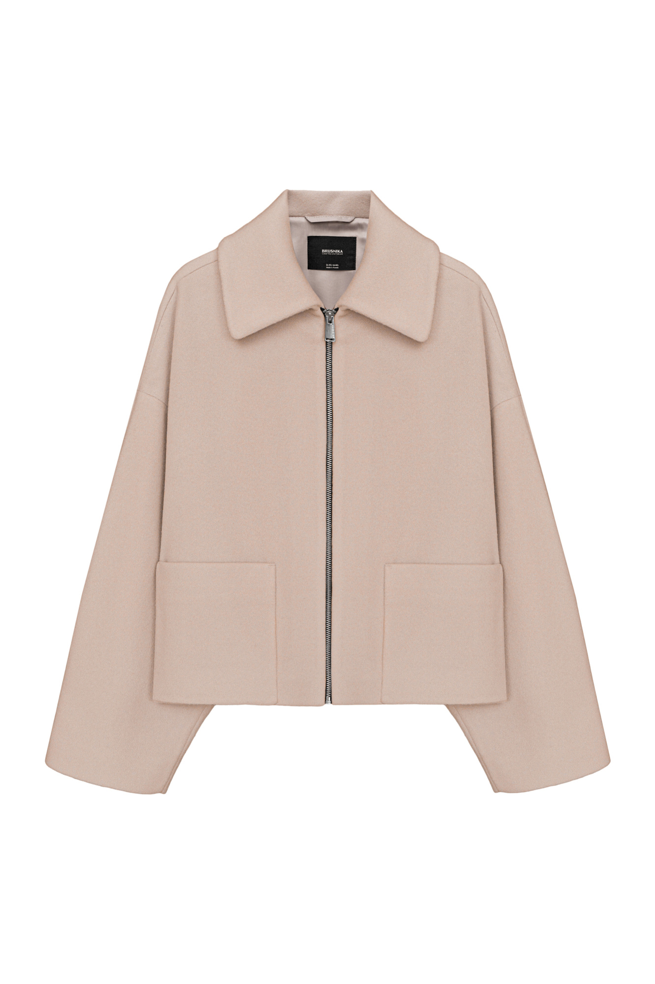 Куртка-жакет из шерсти. Модель со спущенной линией плеч, отложным воротником и накладными карманами. Застежка на молнию. Изделие выполнено на подкладке.