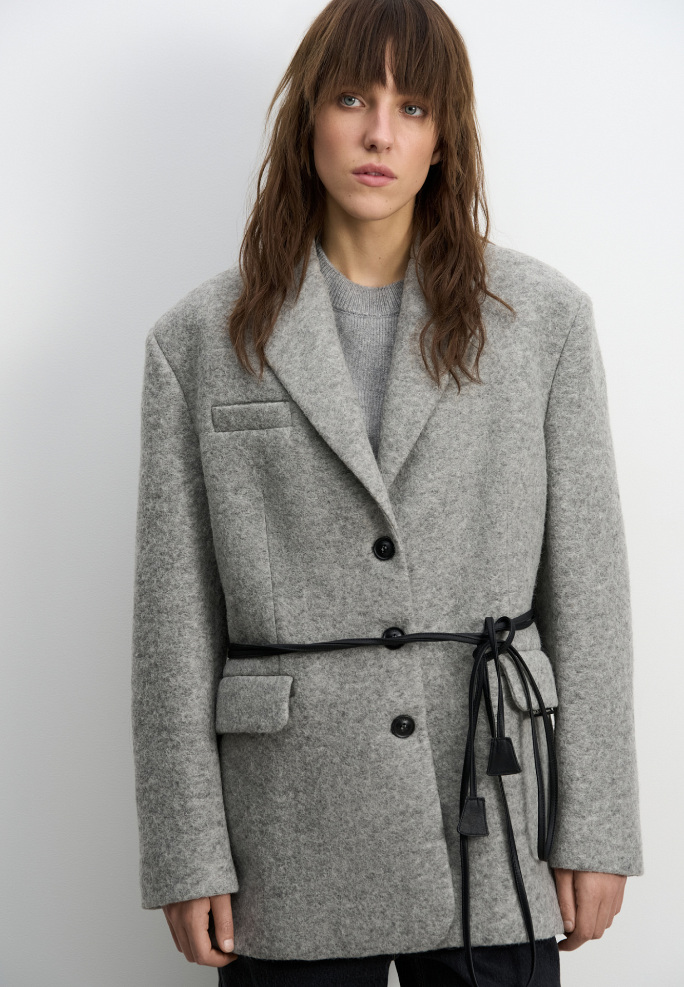 Жакет-пальто с поясом из экокожи