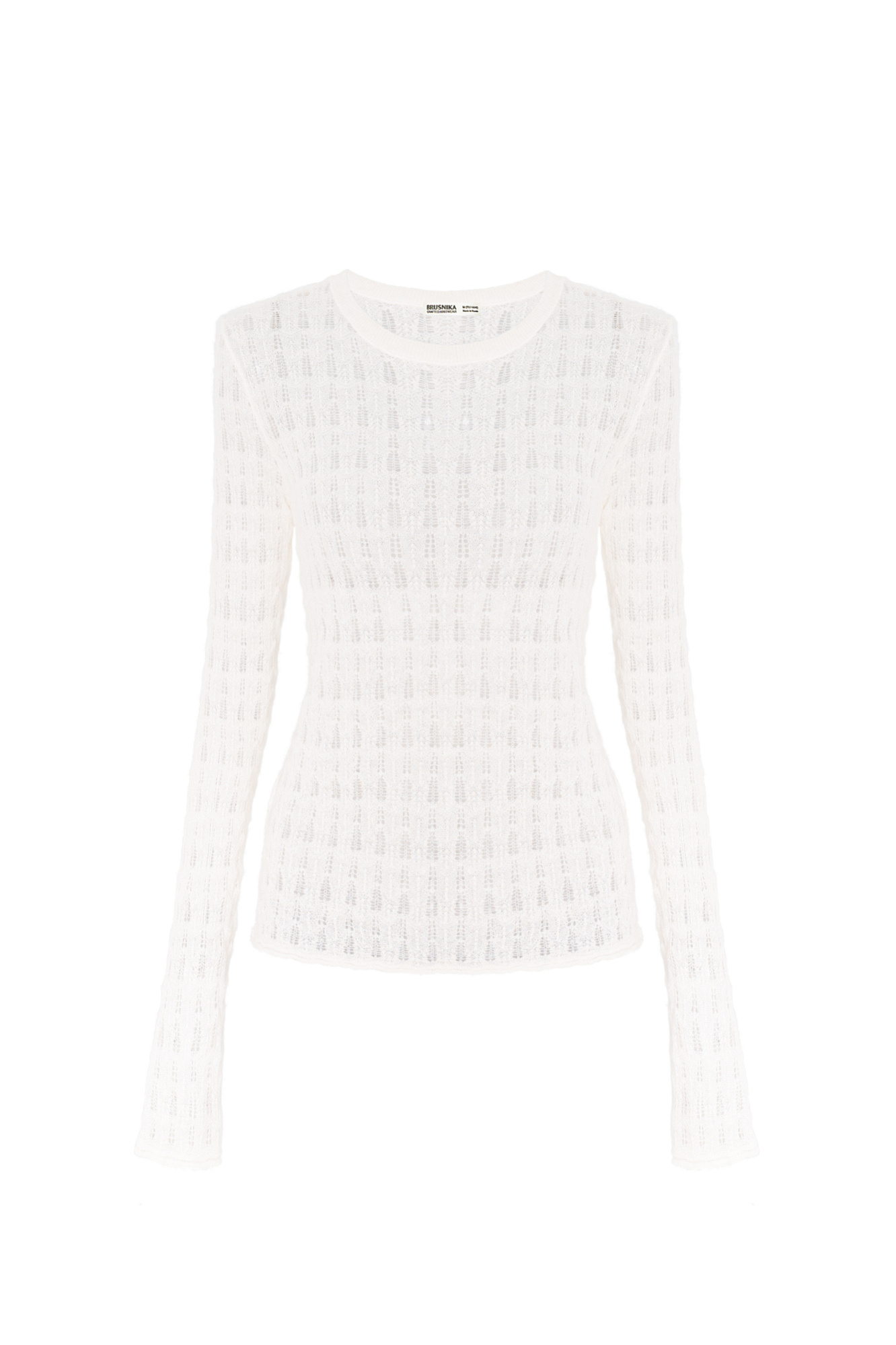 Ажурная водолазка из тонкого супер кид мохера и беби альпака. Модель с длинными рукавами и круглым неглубоким вырезом горловины.