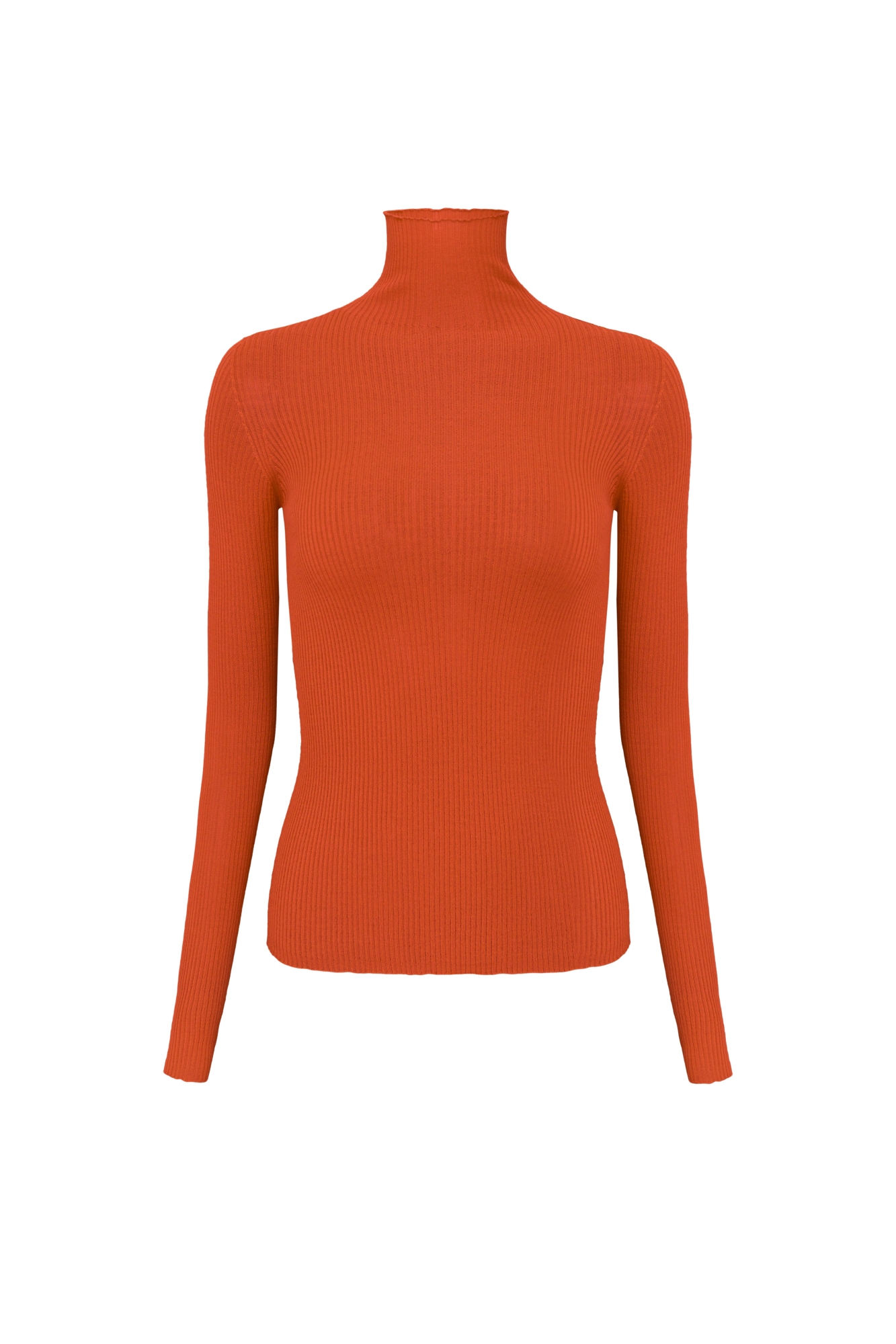 Бесшовная трикотажная водолазка из шерсти мериноса экстрафайн. Модель приталенного силуэта, с длинными рукавами и высоким воротником-стойкой.