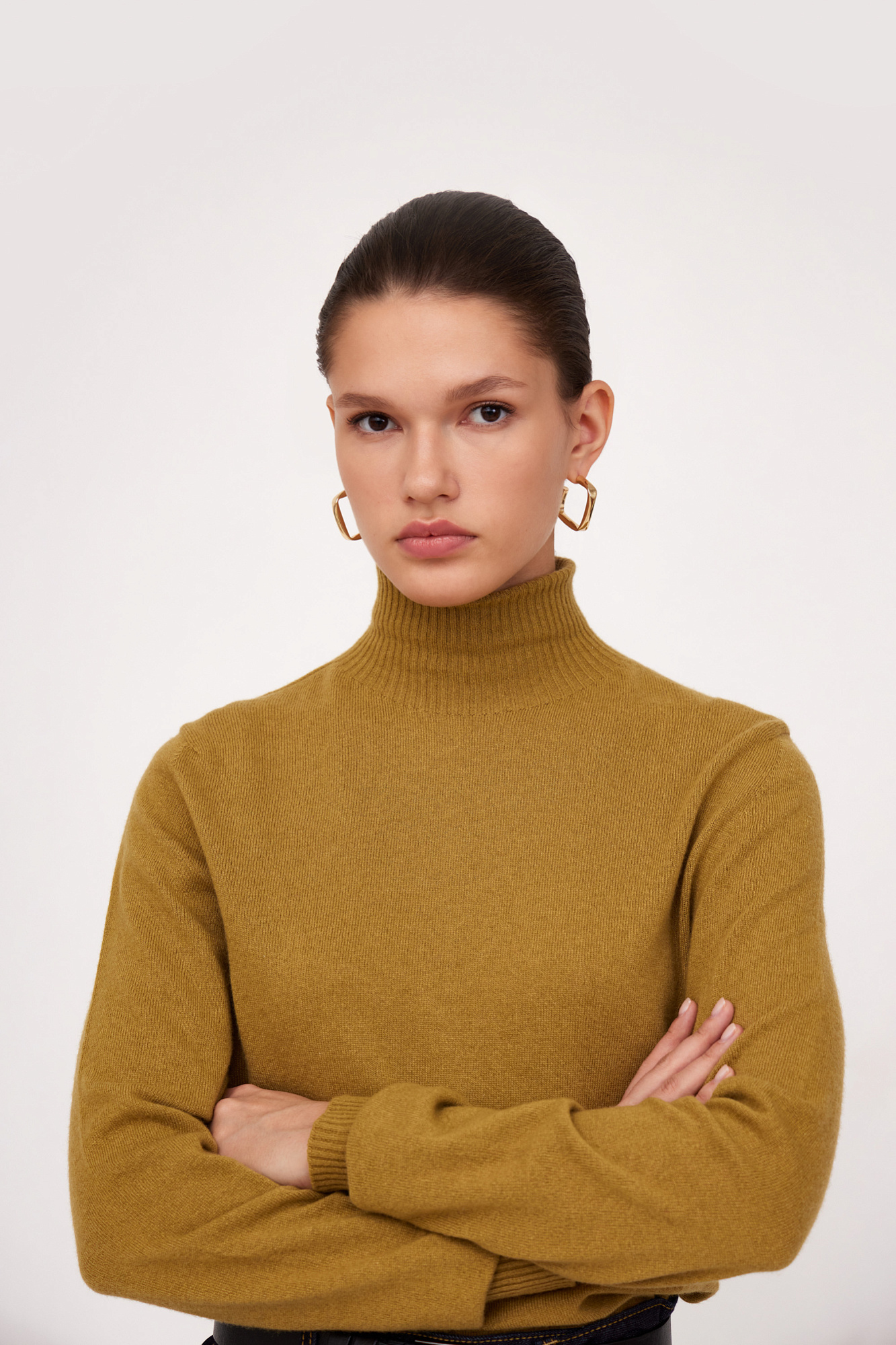 Трикотажная водолазка из шерсти с добавлением кашемира. Модель приталенного силуэта с воротником-стойкой. Края изделия в рубчик.