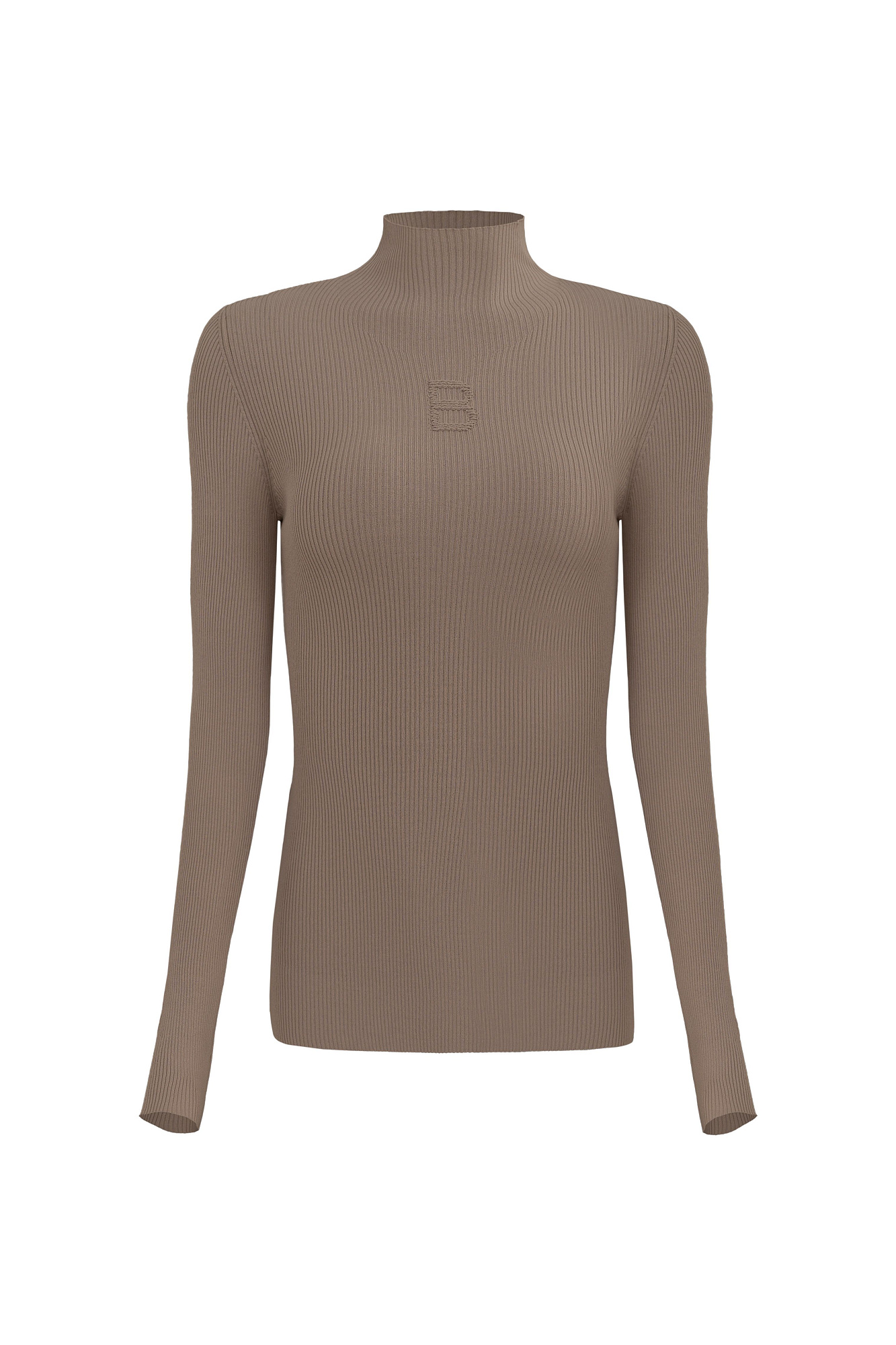 Трикотажная водолазка из вискозы. Модель приталенного силуэта, с воротником-стойкой и длинными рукавами реглан. Изделие декорировано вывязанным логотипом на груди и разрезами на внешней стороне рукавов.
