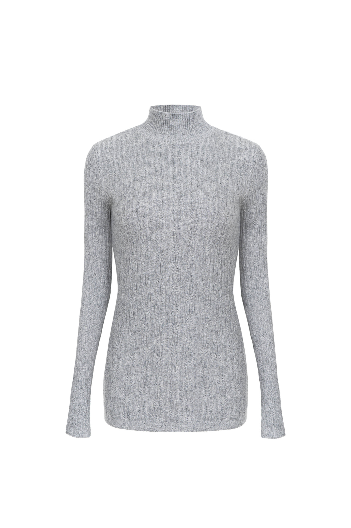 Трикотажная водолазка из шерсти и кашемира. Модель по фигуре, с длинными рукавами и невысоким воротником-стойкой в рубчик. Изделие декорировано вывязанным узором в виде объемных кос.