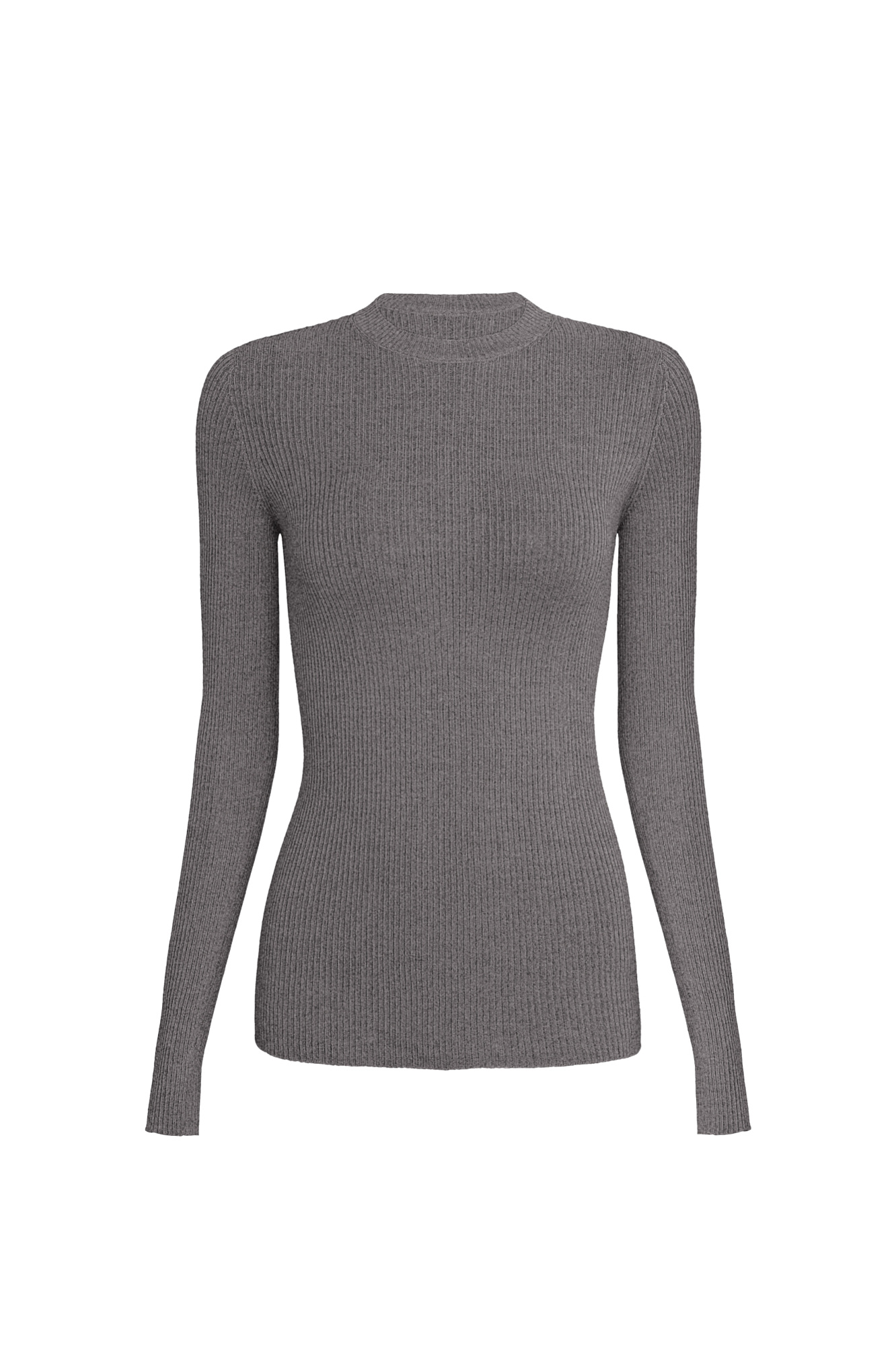 Цельновязаная полупрозрачная водолазка из шерсти. Модель с длинными рукавами и круглым вырезом. Изделие выполнено в рубчик.