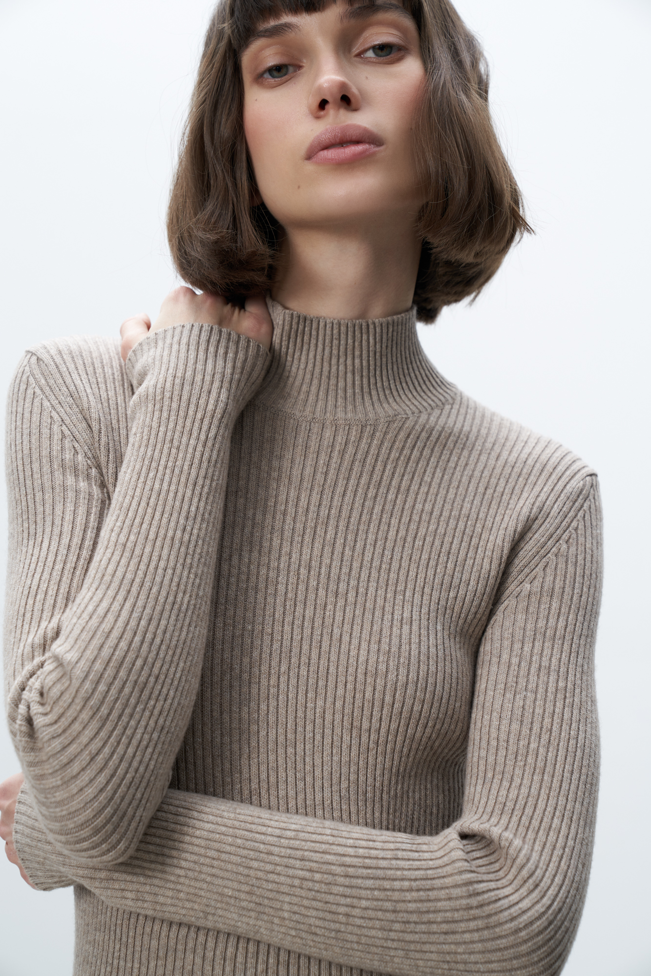 Трикотажная водолазка из шерсти с добавлением кашемира. Модель приталенного силуэта с воротником-стойкой.