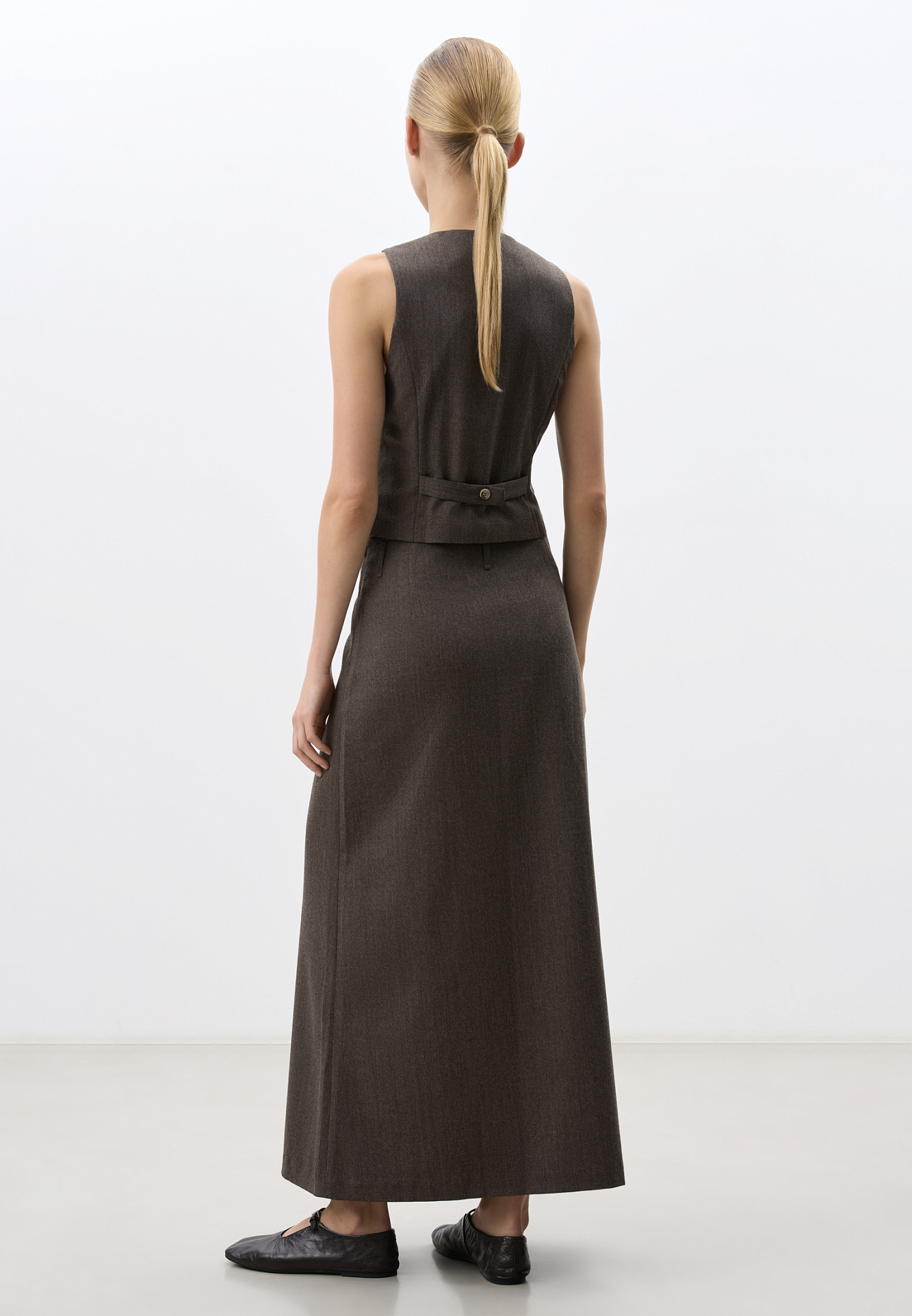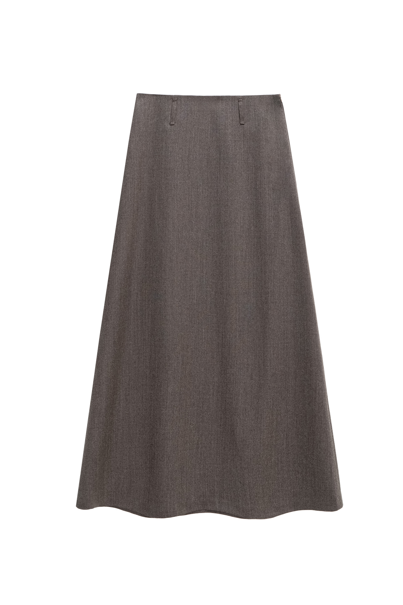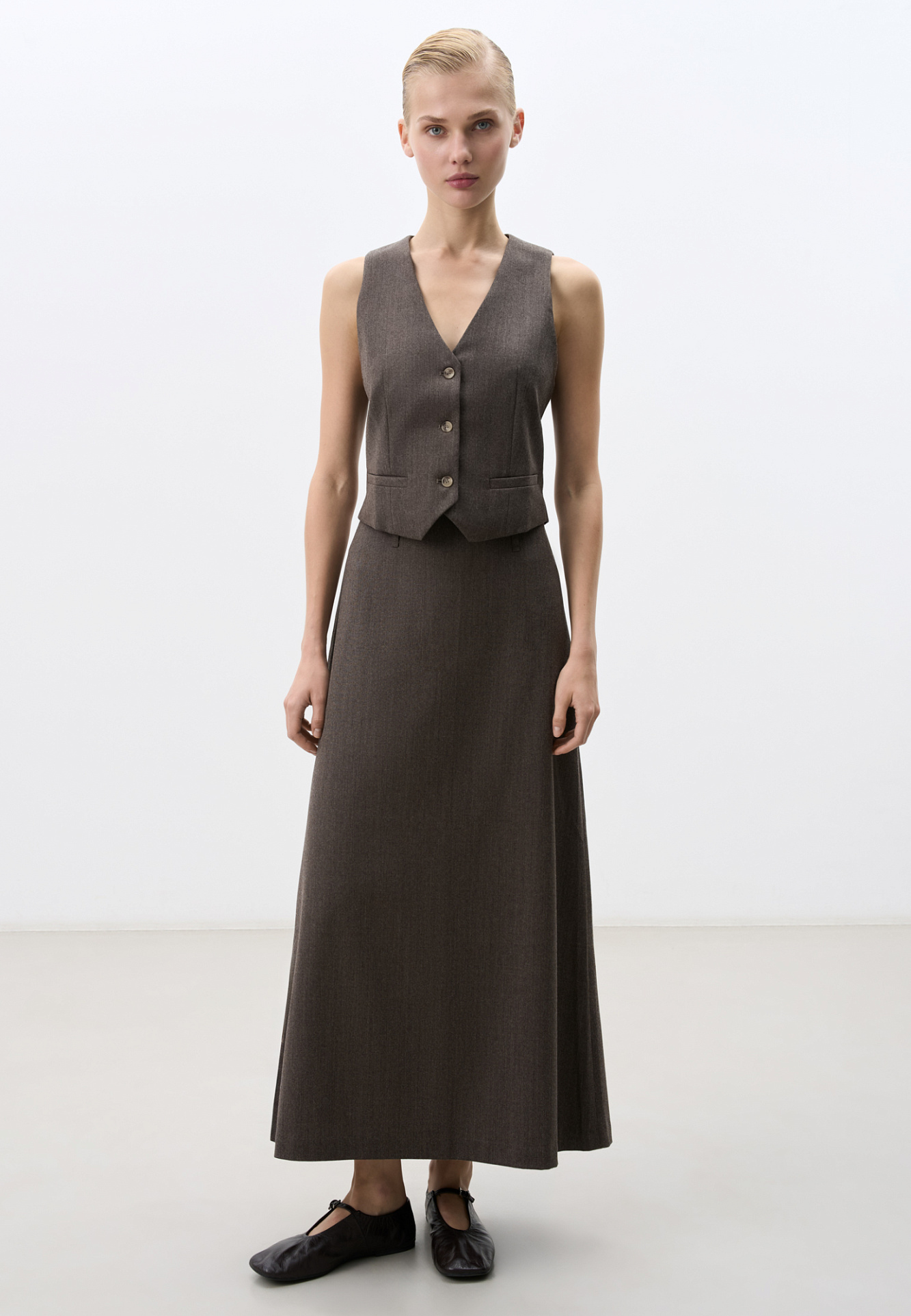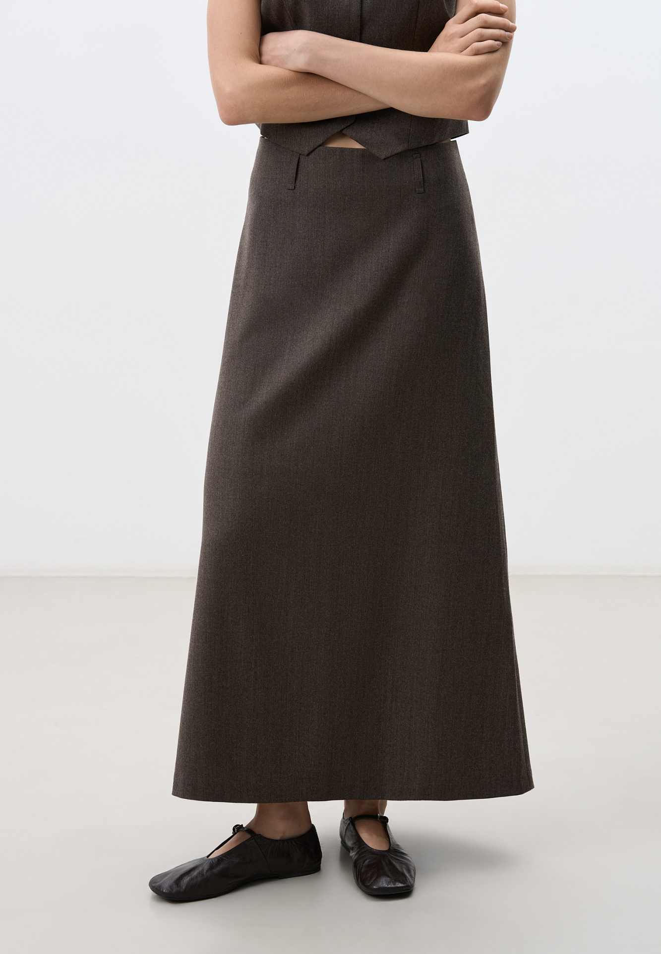 Юбка длины макси из шерсти. Модель А-силуэта со шлевками на поясе для ремня и застежкой на молнию сбоку.