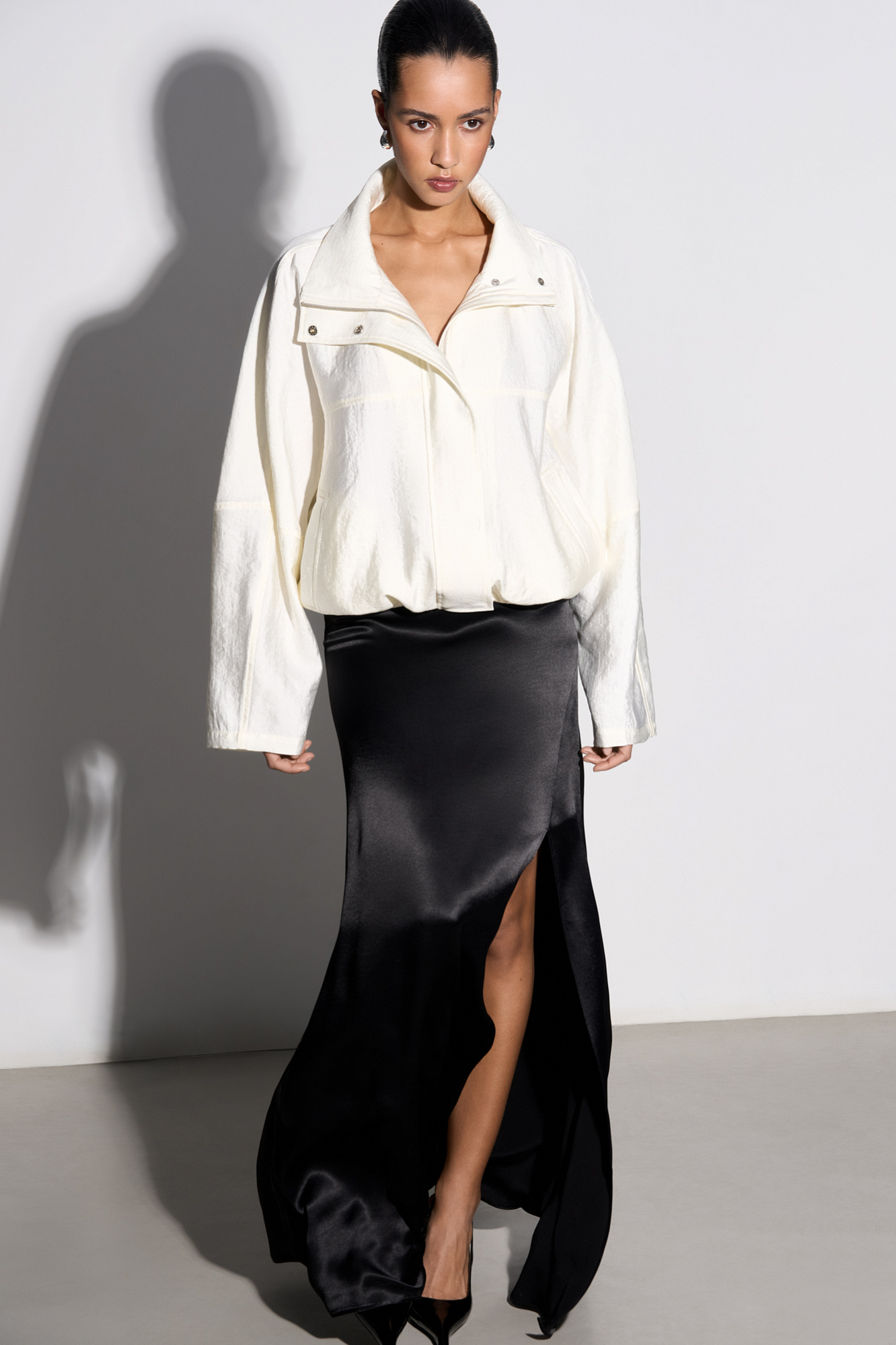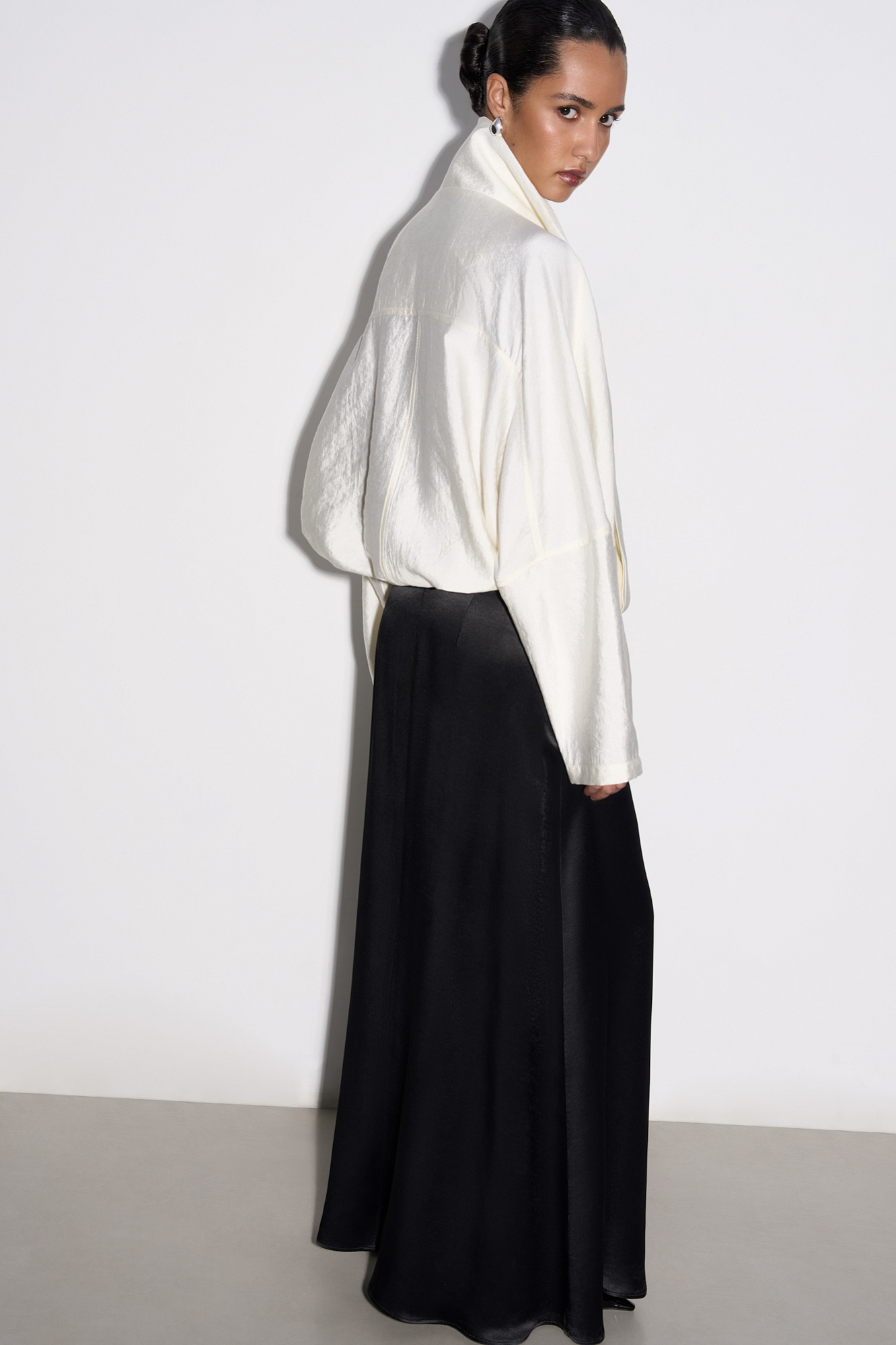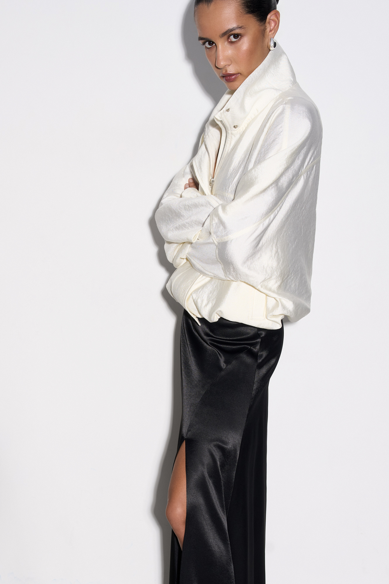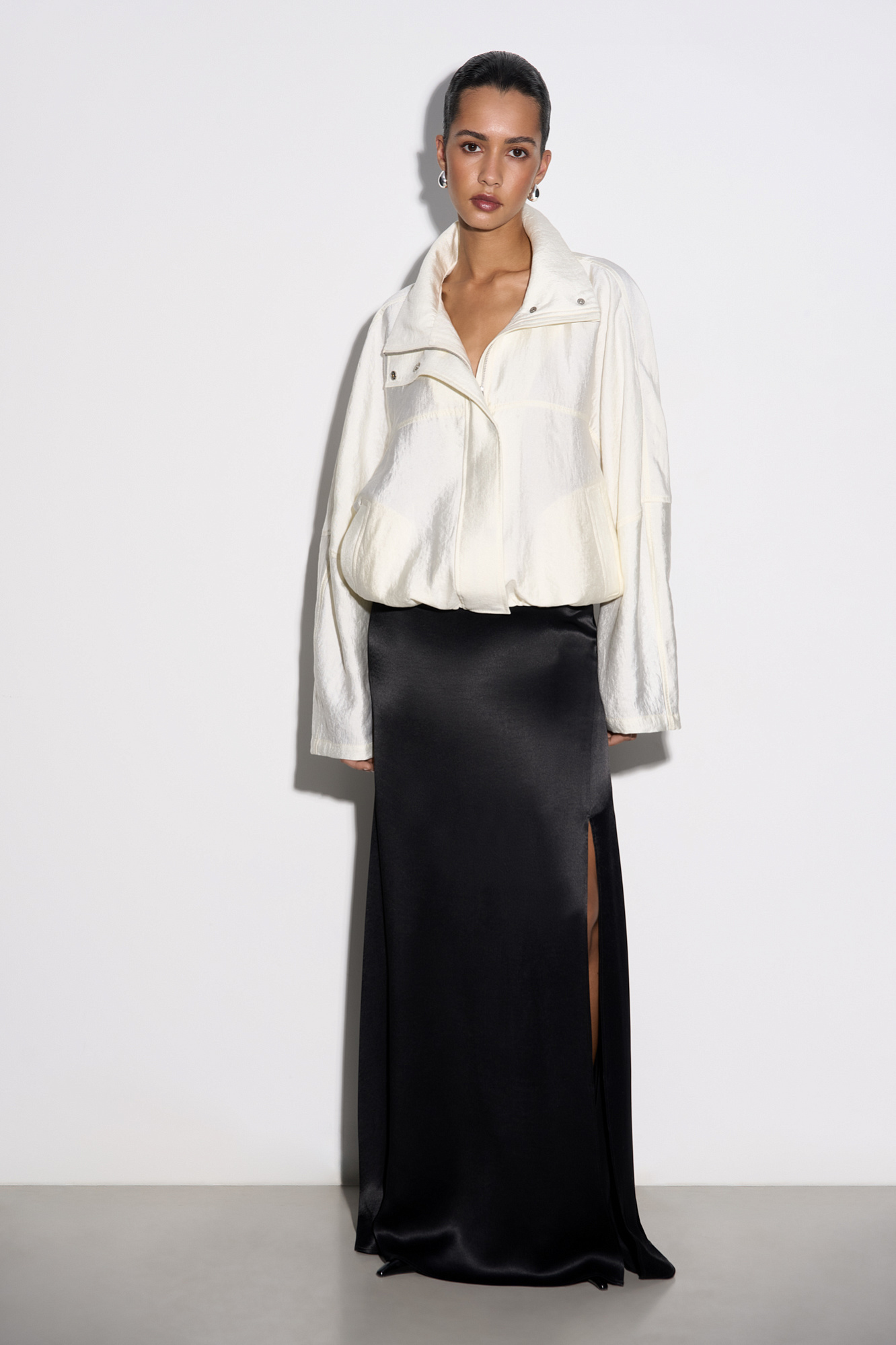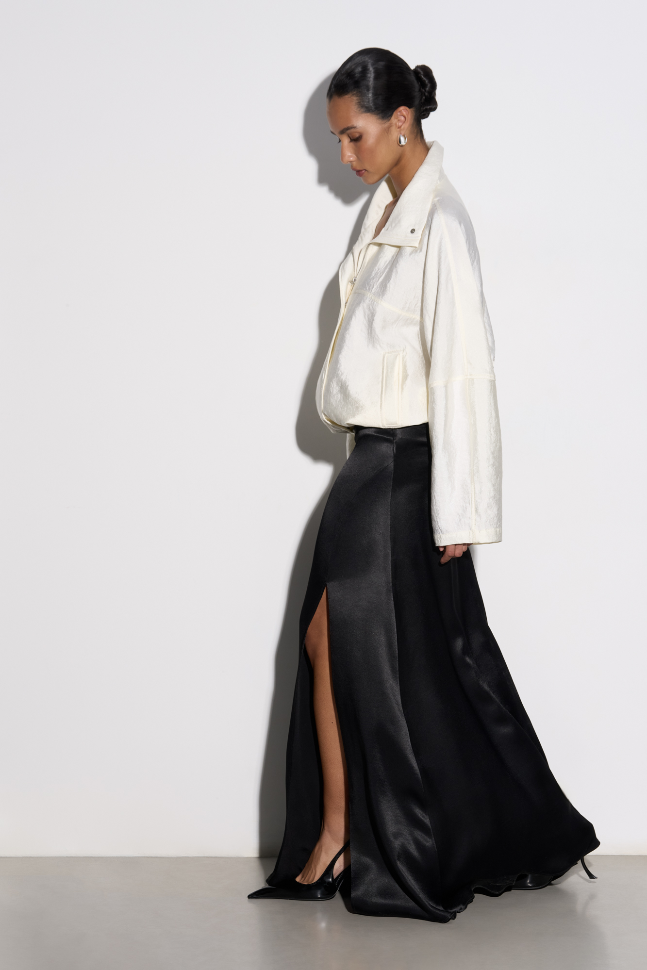 Атласная юбка длины макси из 100% вискозы с разрезом и застежкой на молнию.
