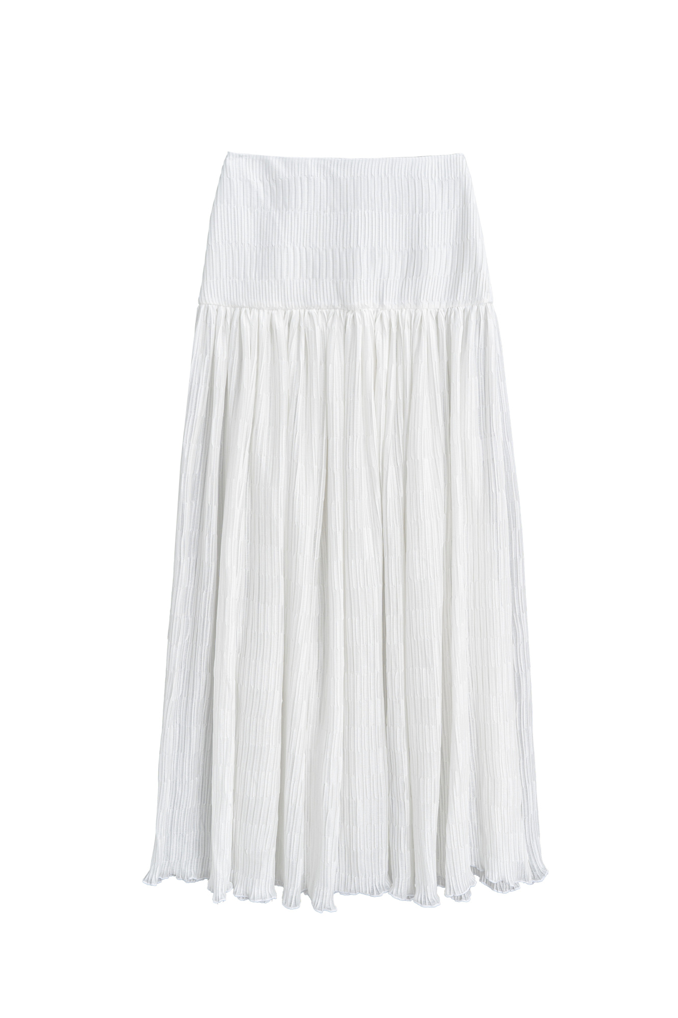 Шифоновая юбка длины макси из текстурированной ткани. Модель приталенного силуэта на кокетке
