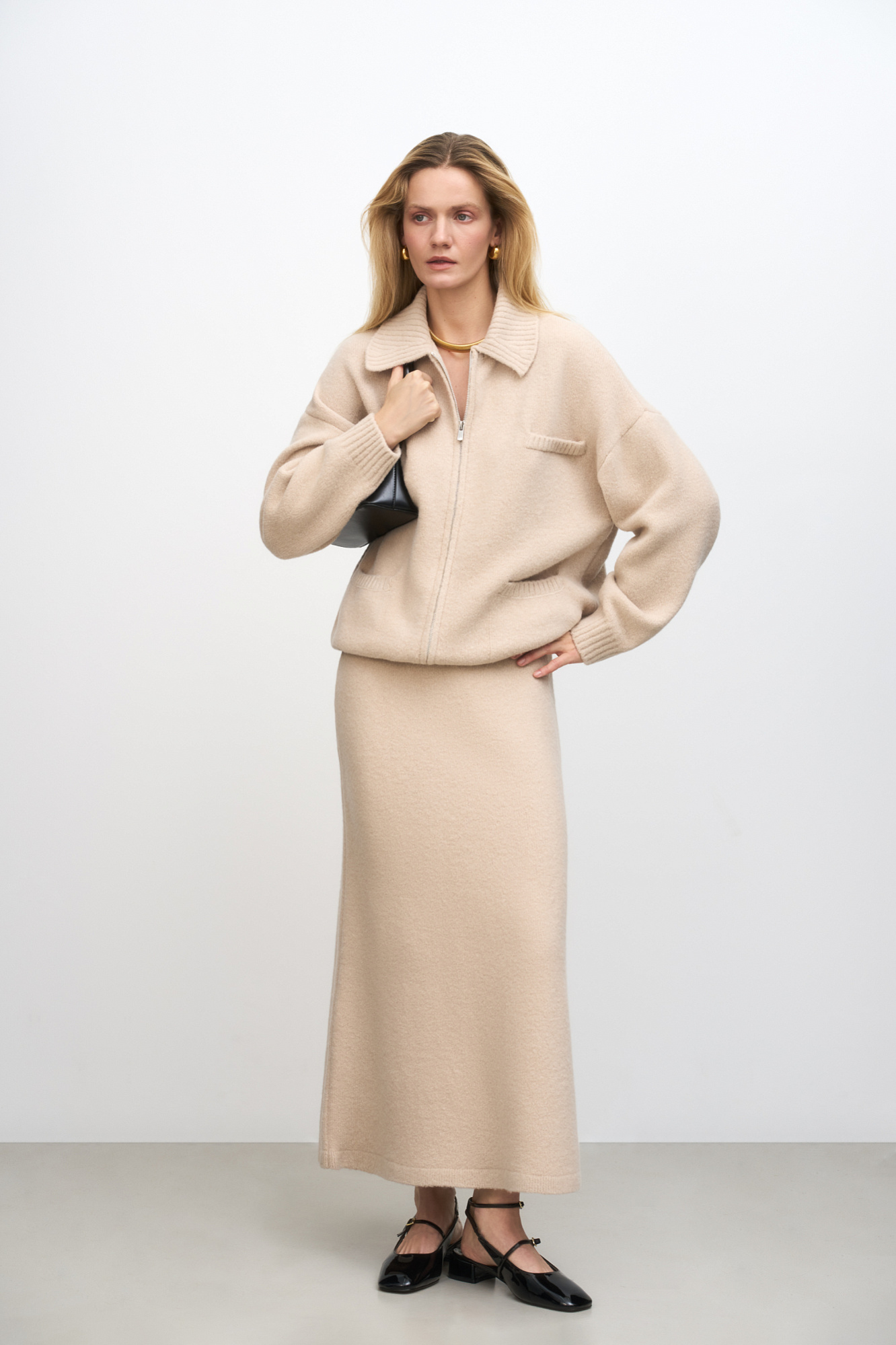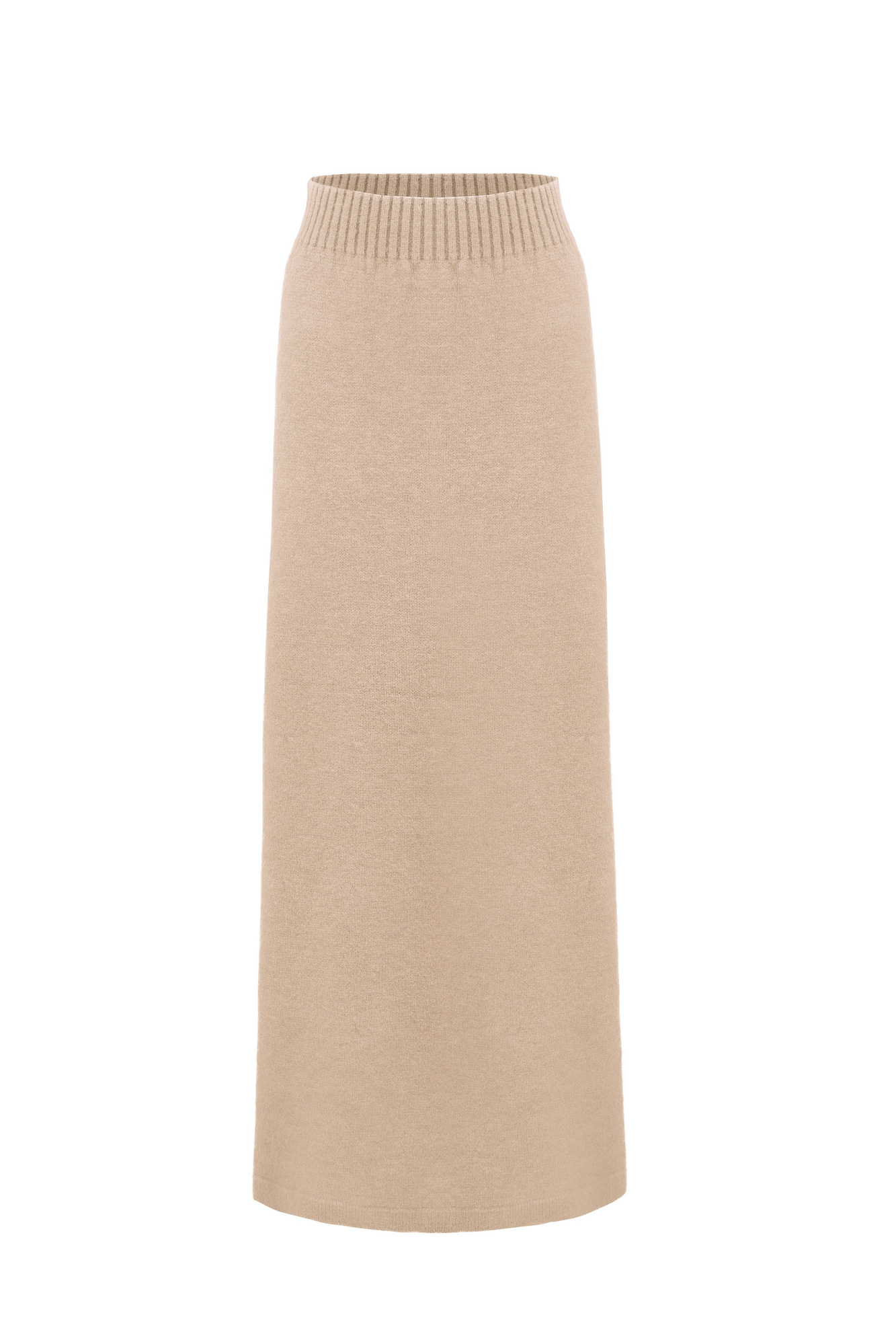 Трикотажная юбка длины макси из смесовой шерсти. Модель трапециевидной формы с эластичным поясом в рубчик.
