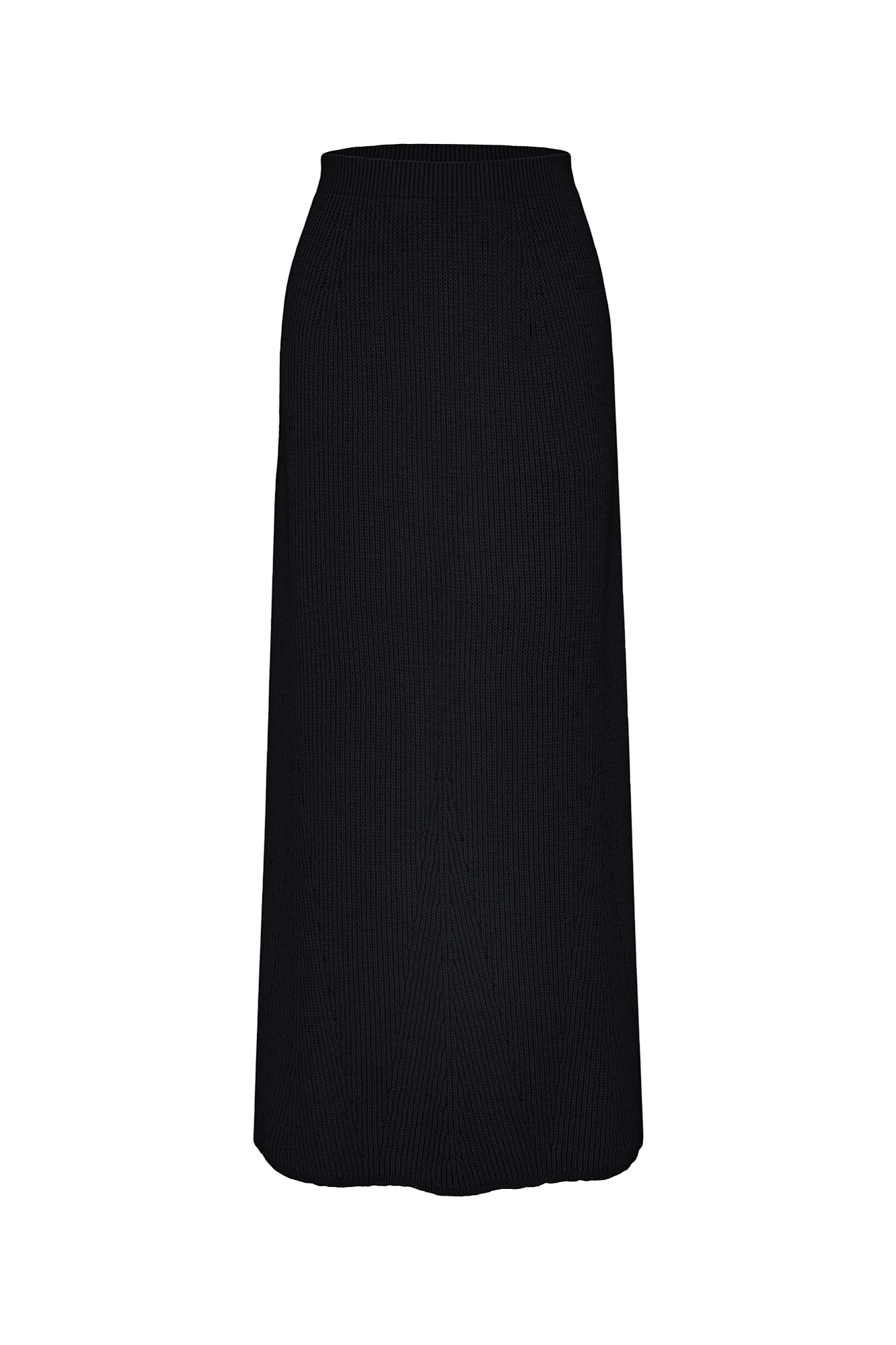 Трикотажная юбка длины макси из хлопка с добавлением вискозы. Модель свободного силуэта с эластичным поясом в рубчик. Дополнить образ можно жилетом в таком же стиле.