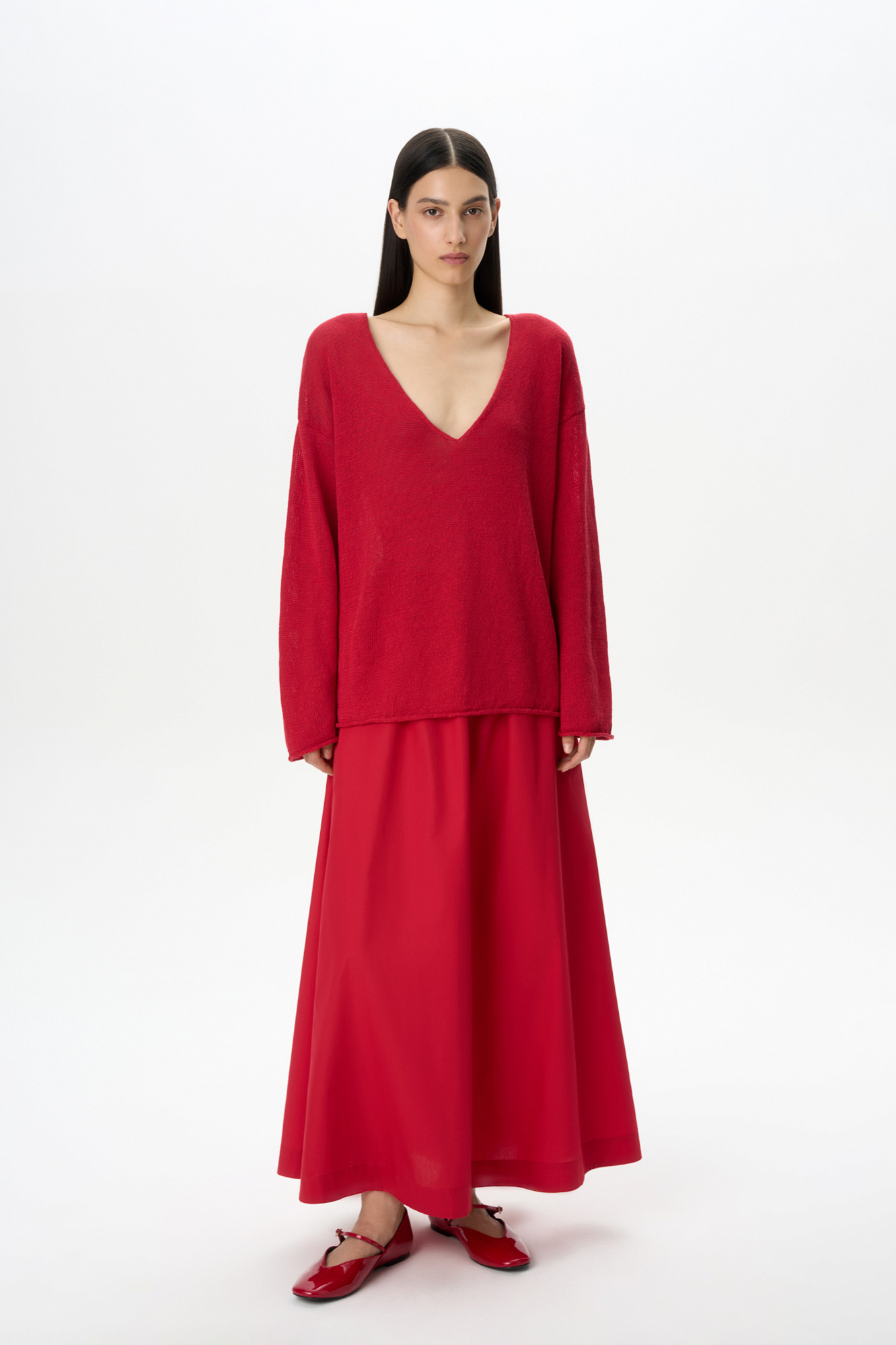 Хлопковая юбка длины макси. Модель прямого кроя, с эластичным поясом на кулиске и карманами.
