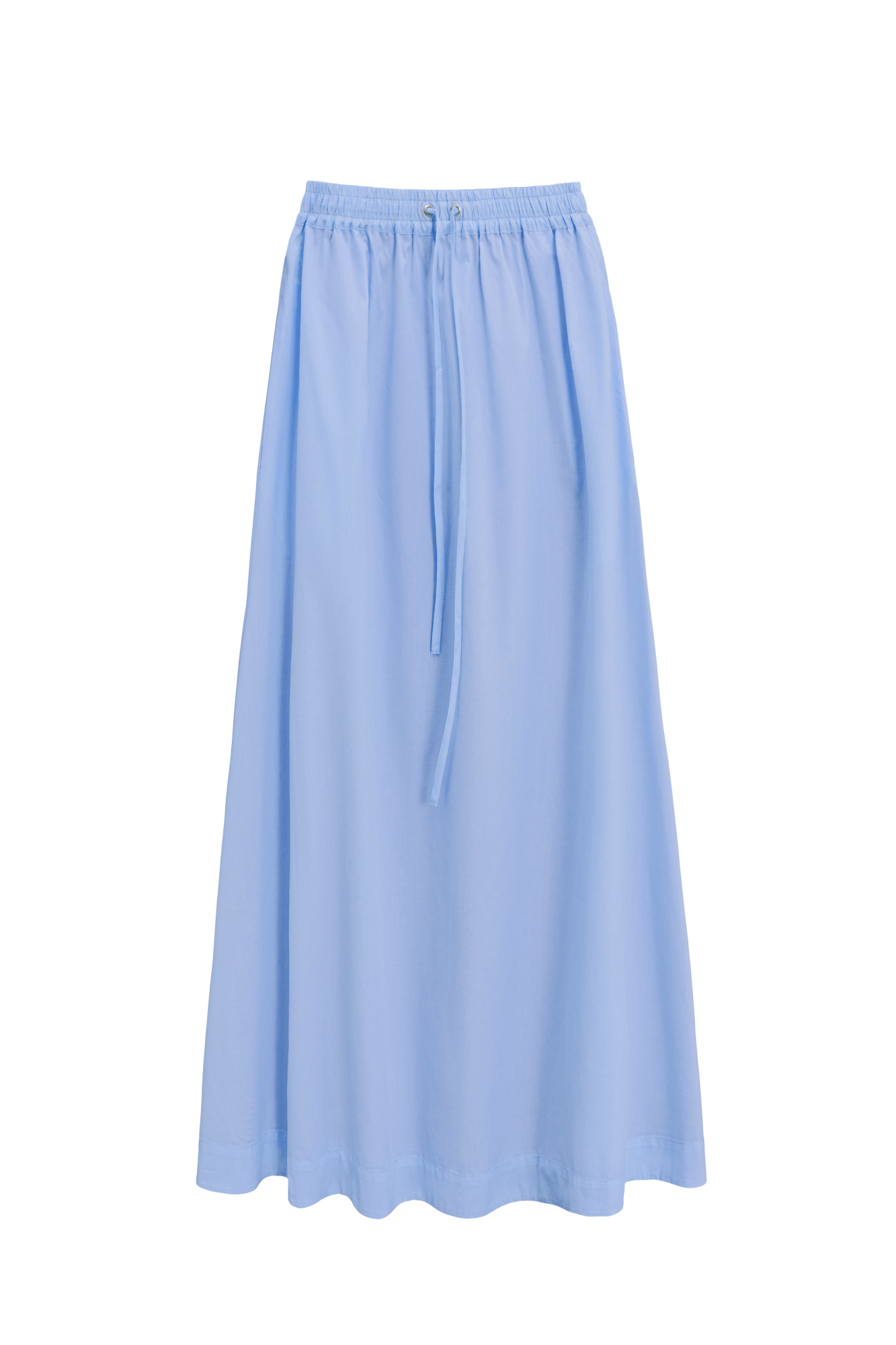 Хлопковая юбка длины макси. Модель прямого кроя, с эластичным поясом на кулиске и карманами.