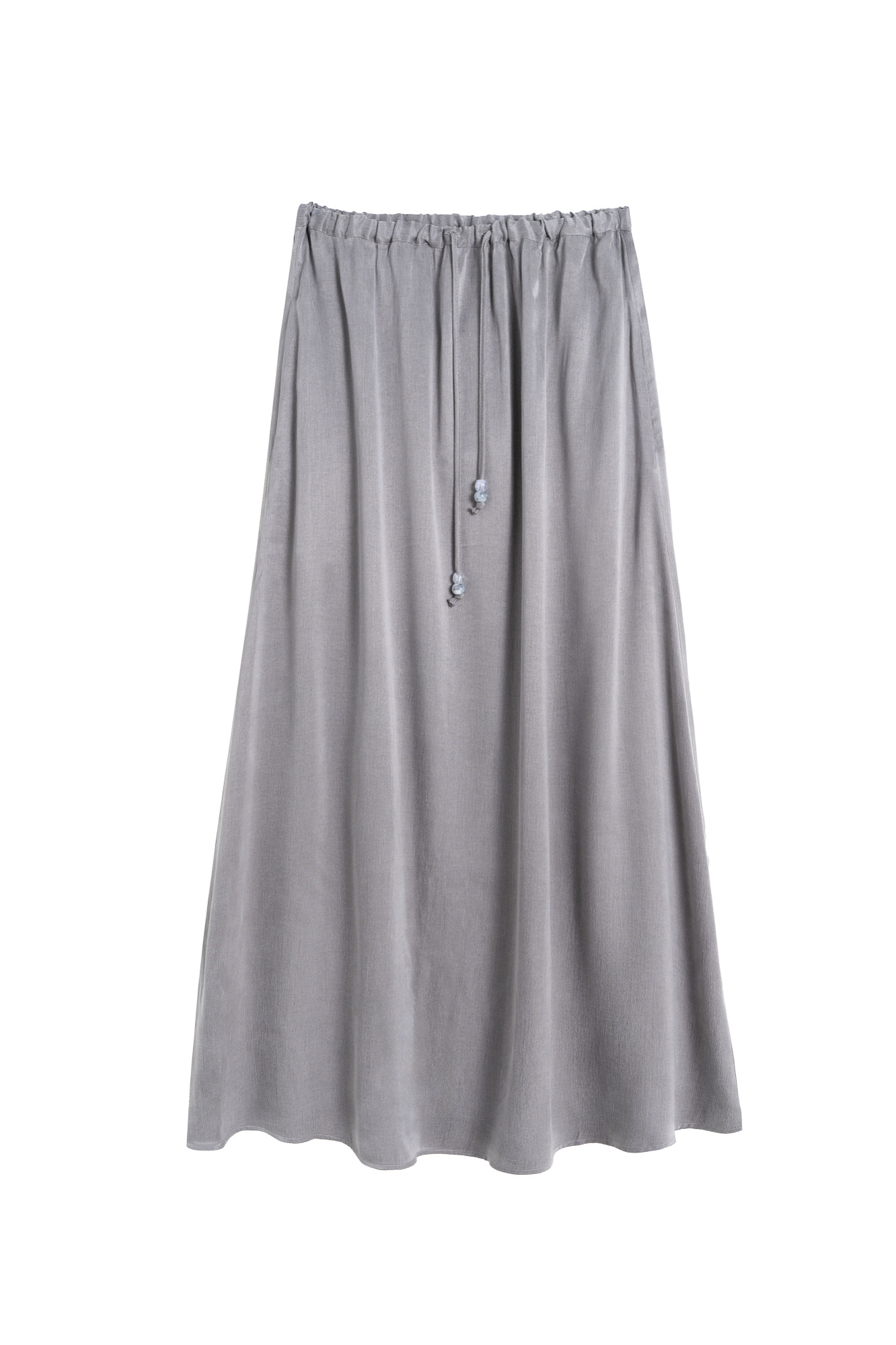 Юбка длины макси из купры. Модель свободного силуэта на кулиске с поясом, декорированным бусинами.